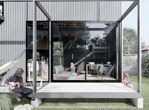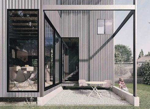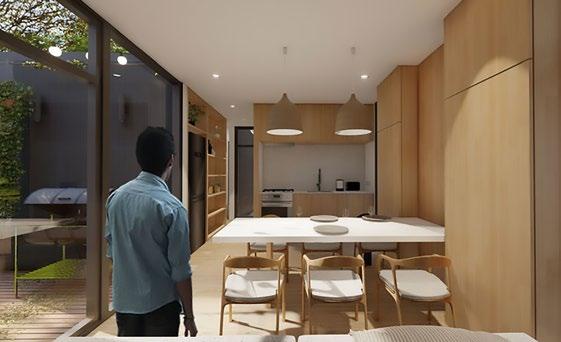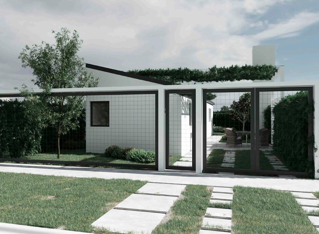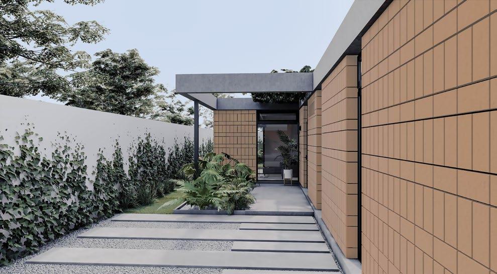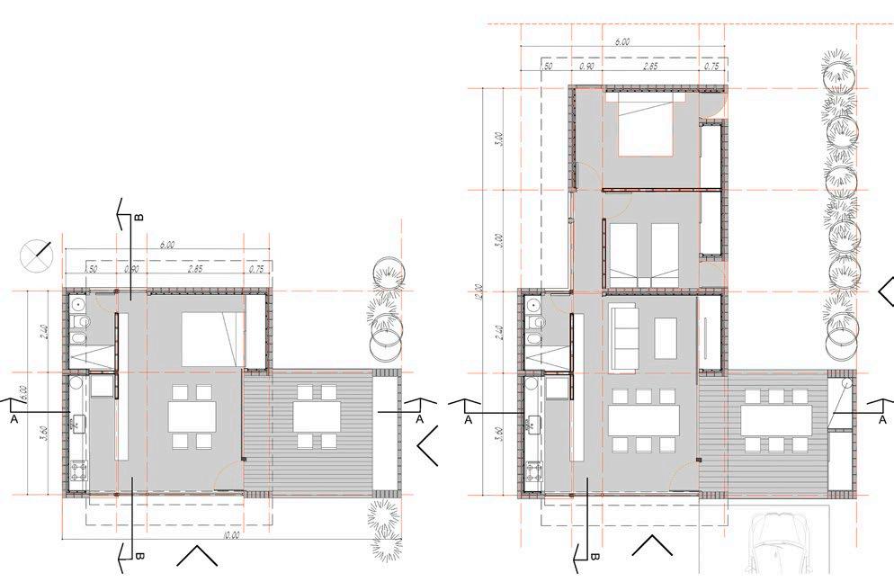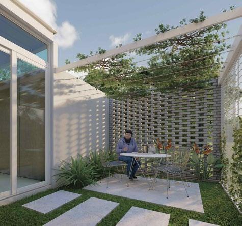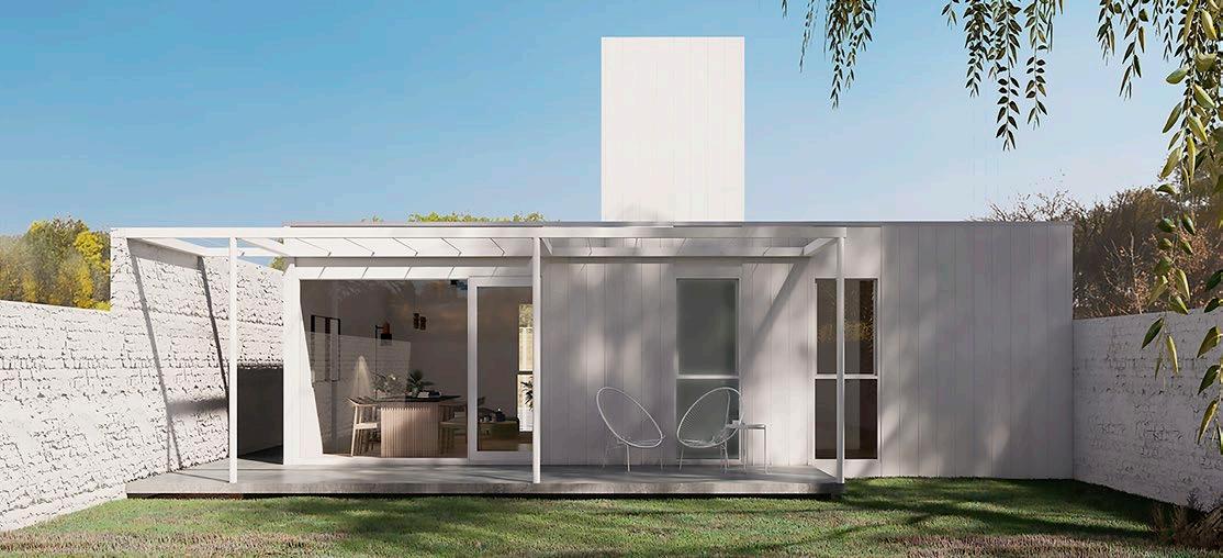 Vivienda pensada en principio para una o dos personas, en la primera etapa, y una segunda etapa con dos habitaciones (opcional sector de trabajo para realizar home office). Se propone el contacto con la naturaleza. Pensada para terrenos de 8 o 10 metros de ancho y 20 o más de fondo.