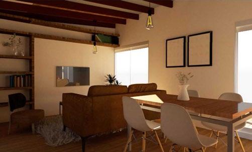 Planteamos cimiento corrido de hormigón pobre para suelos firmes de poca profundidad. En caso que el suelo firme se encuentre a mayor profundidad se puede optar por pilotines y viga de fundación. Encadenados inferiores y superiores (coincidentes con dintel de aberturas y vanos) de hormigón armado, mampostería de ladrillos portantes de 12 con refuerzos verticales y losa de viguetas pretensadas con ladrillos de EPS, capa de compresión de 5 cm con malla de hierro de 6 mm. Todos los cielorrasos, los paramentos interiores de los muros portantes y las divisiones entre ambientes serán de placa de roca de yeso con material aislante interior, logrando de esta manera una cáscara continua de aislación térmica y acústica.