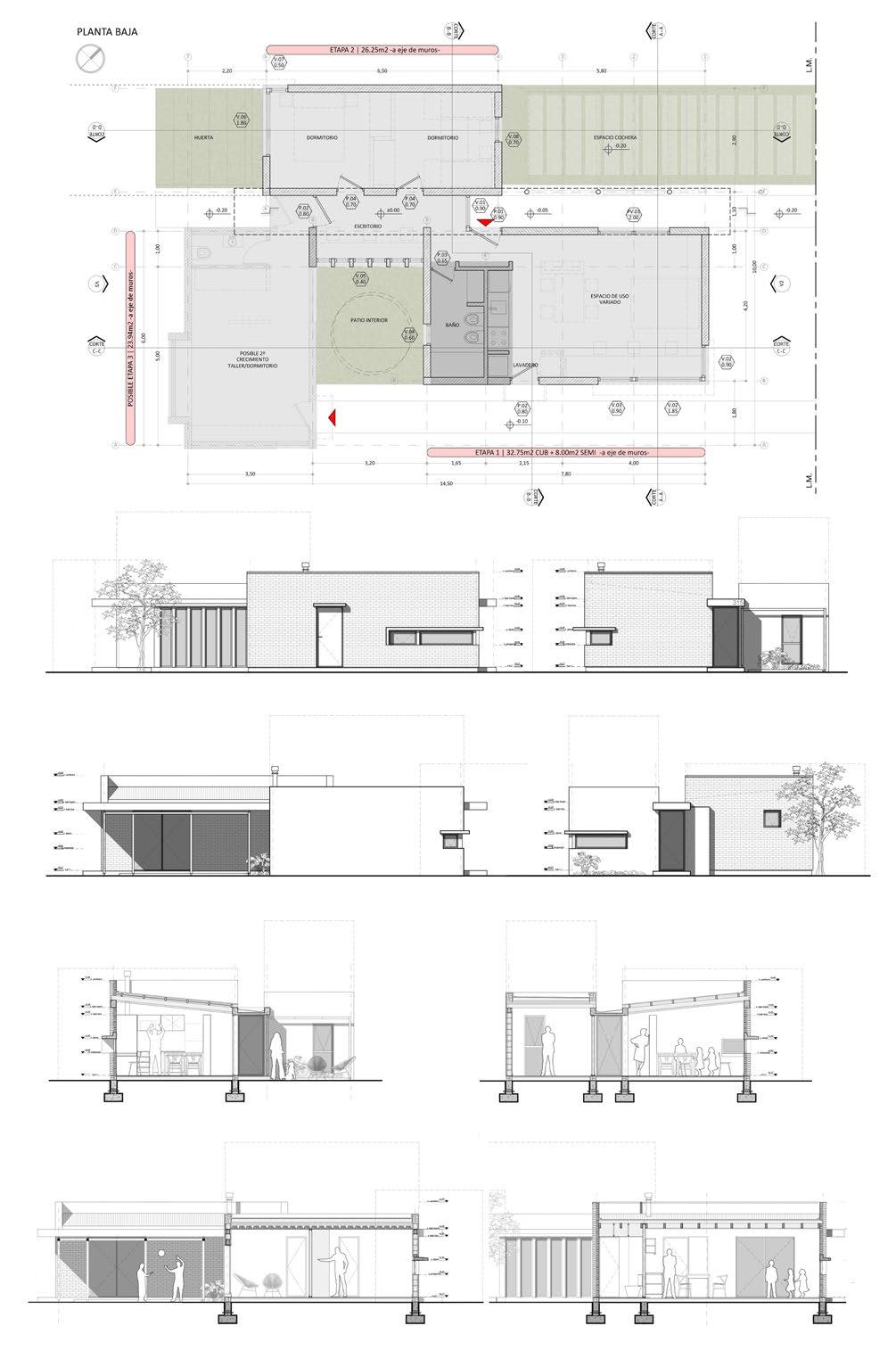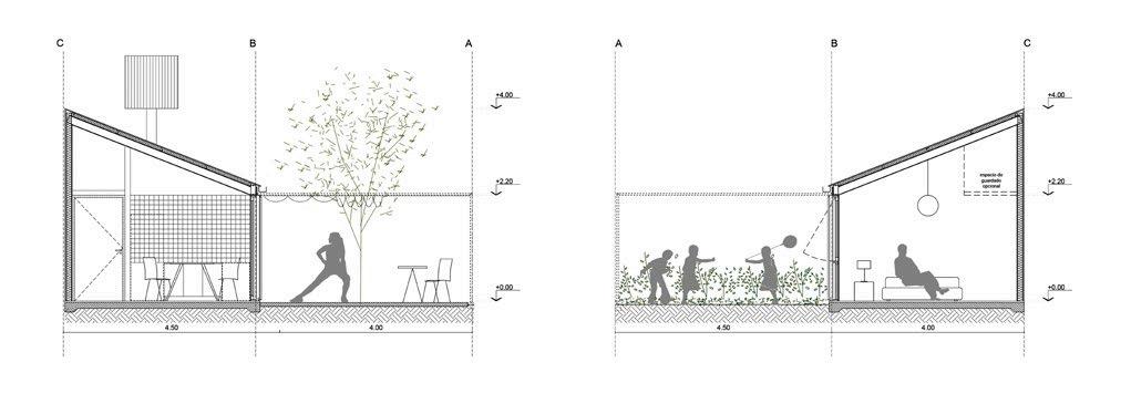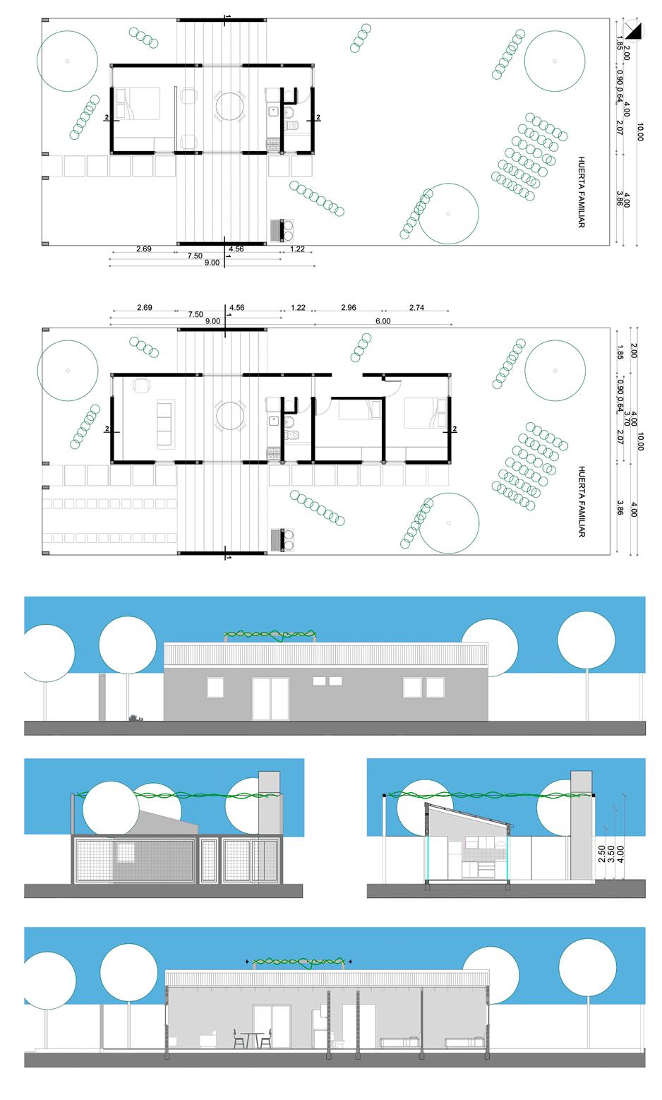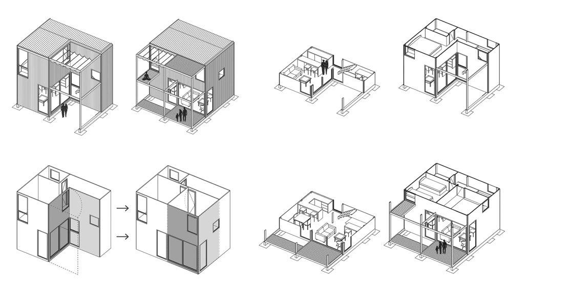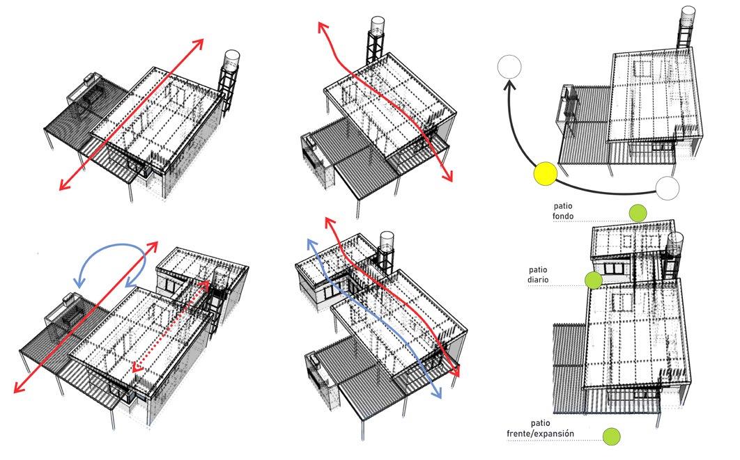 puestos, en donde toda la superficie es espacio de uso. La casa evoluciona con sus usuarios, gradualmente; se plantea un crecimiento modular reutilizando los elementos preexistentes.