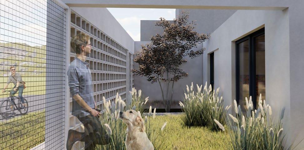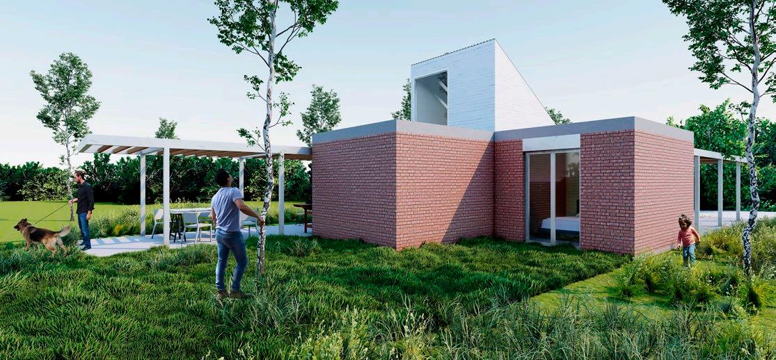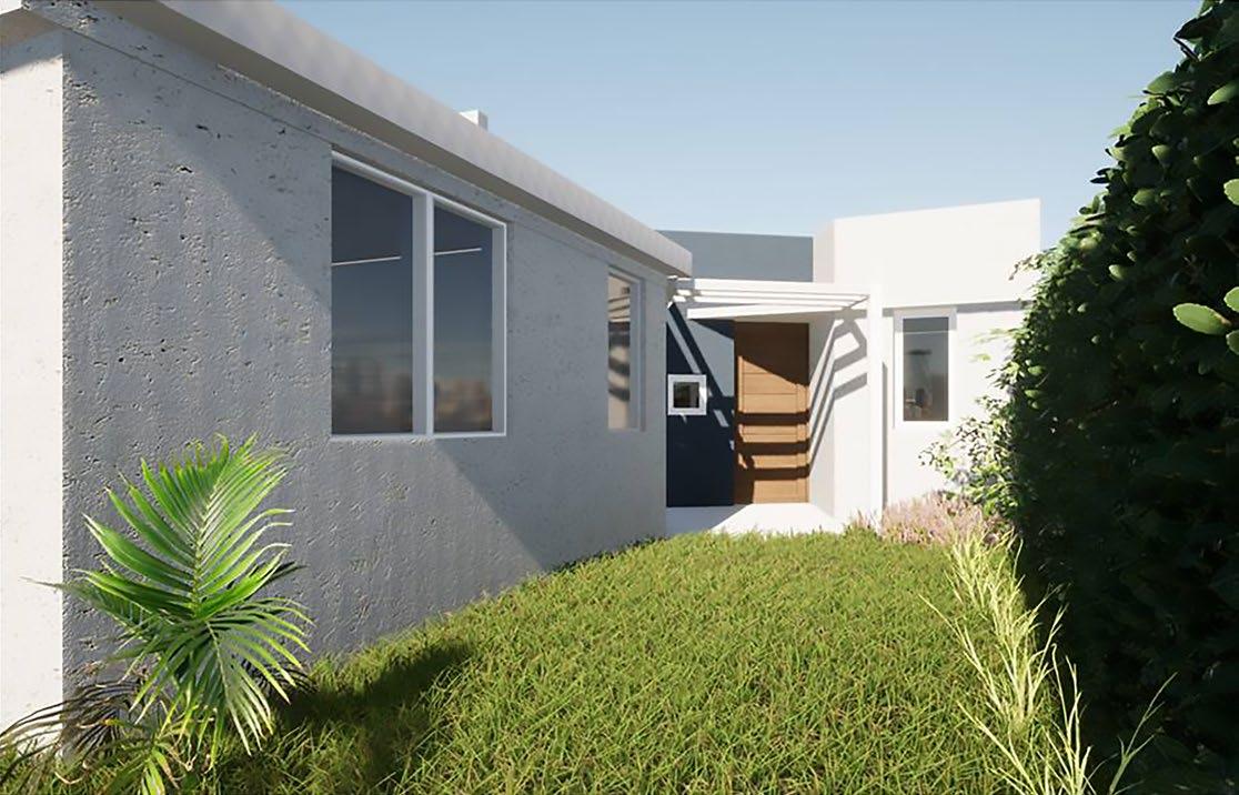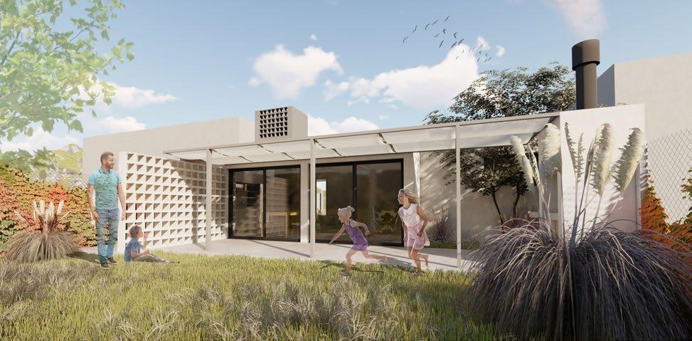 La propuesta arquitectónica busca dar respuesta a un diseño de vivienda implantada en la región pampeana sur-oeste de la provincia de Buenos Aires, principalmente con dos puntos de partida: funcionalidad y flexibilidad, teniendo especial cuidado en brindar espacios neutros que se puedan adaptar fácilmente a las necesidades y requerimientos de sus habitantes. Según su implantación, puede adaptarse a terrenos con tipología entre medianeras y/o perímetro libre; en este caso, responde a un terreno de 10 metros de ancho y 30 de fondo, con