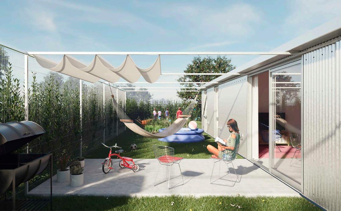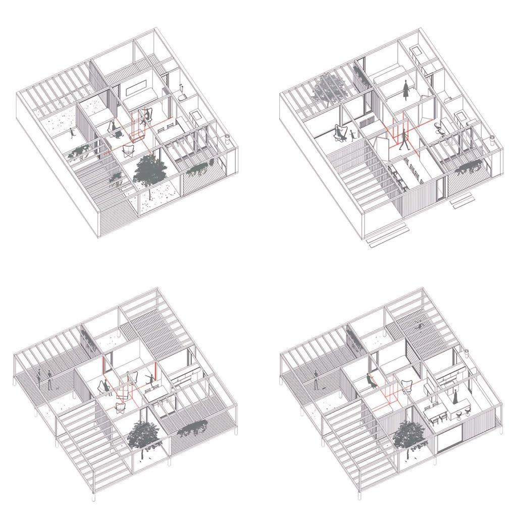 Se pensó en una casa que se adapte a la necesidad de hacer lugar a la nueva falta de jerarquía espacial y simbólica, y a la flexibilidad necesaria para que el habitante adapte el hábitat a sus necesidades y a sus deseos. Que lo subdivida, que lo amplíe, lo transforme.
