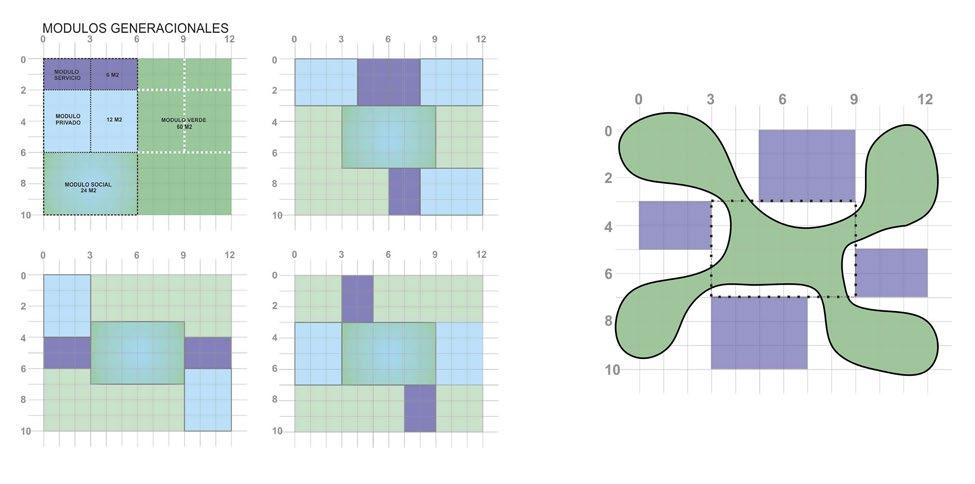 Nos proponemos la manzana como sistema de relaciones, a partir del lote individual, de las relaciones de partes, considerando transformabilidad sobre la base de un sistema modular que representa una unidad habitable mínima y repetible. Entendemos que la relación entre sistema y diversidad pueden resultar antagónicas; sin embargo, nos proponemos una unidad habitable que pueda replicarse y adaptarse a diferentes usos sobre la base de una primera entidad técnica de base que es el núcleo.