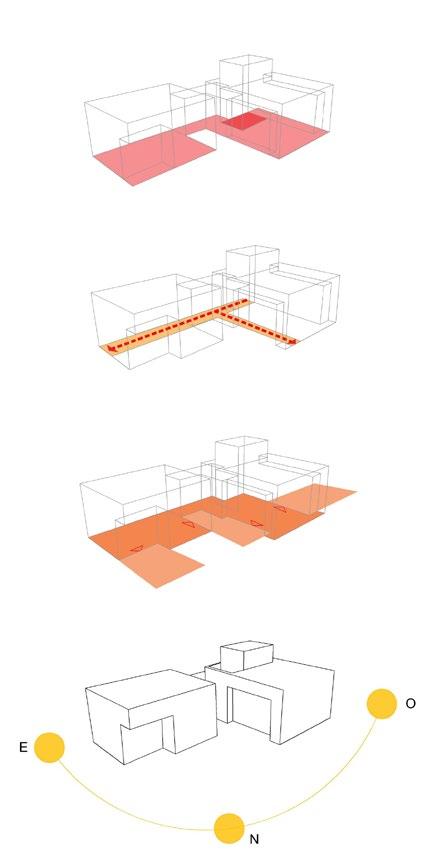Una sucesión de habitaciones de iguales características, conectadas interiormente a través de vanos. Una sucesión de espacios iluminados, ventilados y conectados siempre al exterior Cada uno de los espacios-habitación tiene las mismas posibilidades de crecimientos futuros.