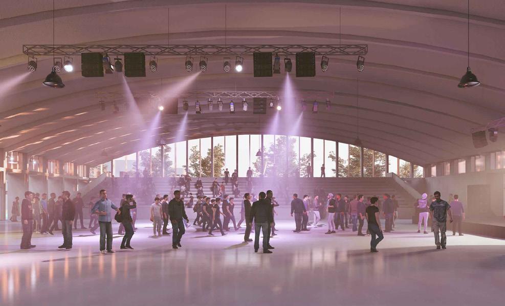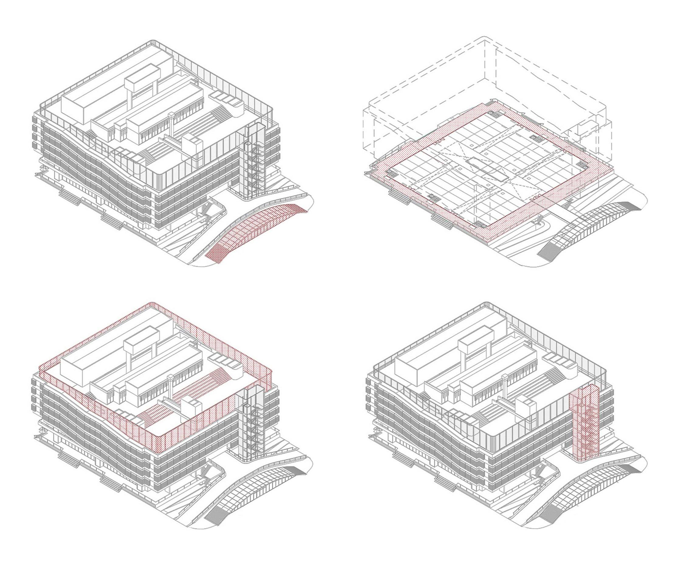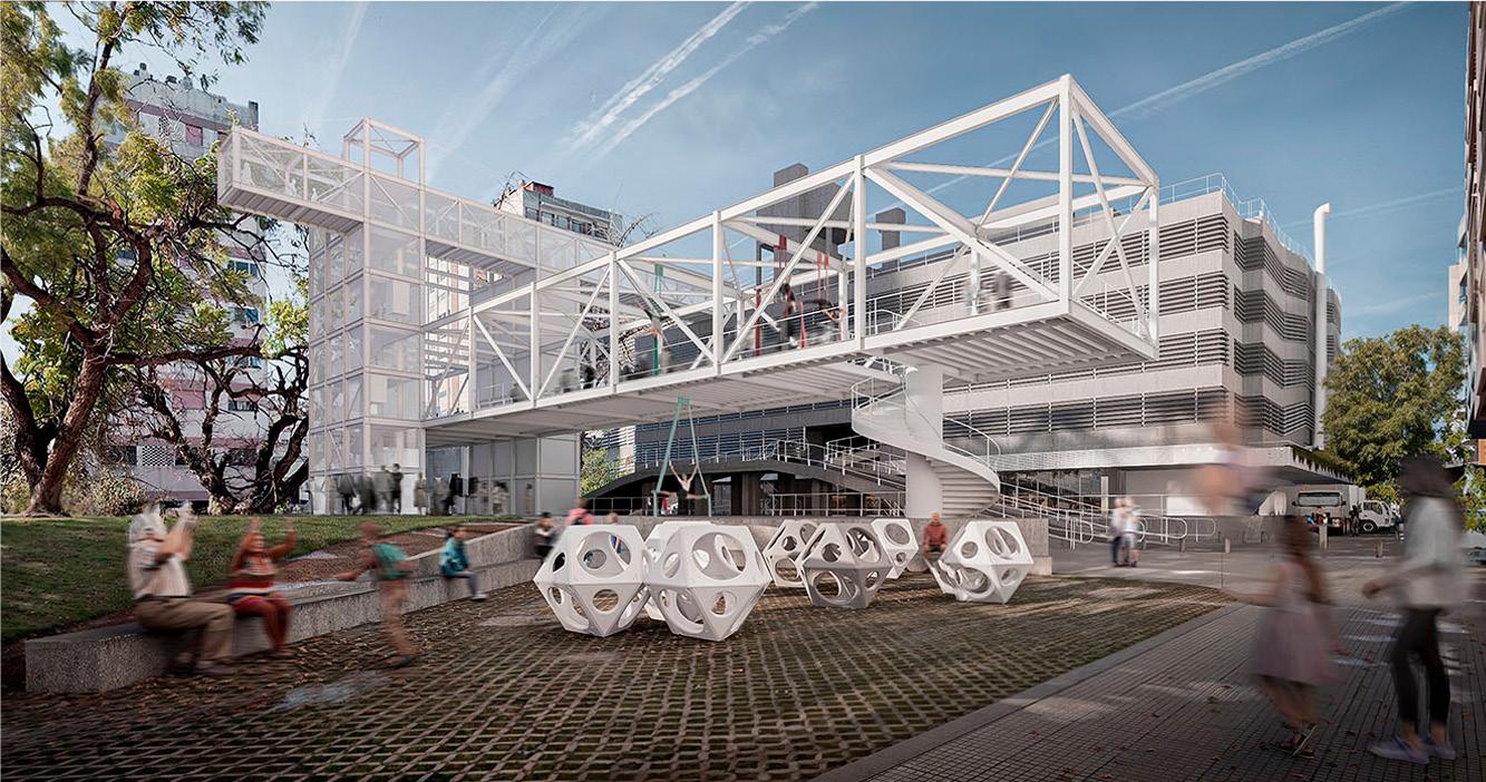 El estacionamiento es un sector de apoyo para todos los demás lugares con diferentes actividades. Pero se contempla la posibilidad de entender al recinto como un condensador de usos. Eventos, ferias, circo, una oportunidad para diversificar el uso de este sector.