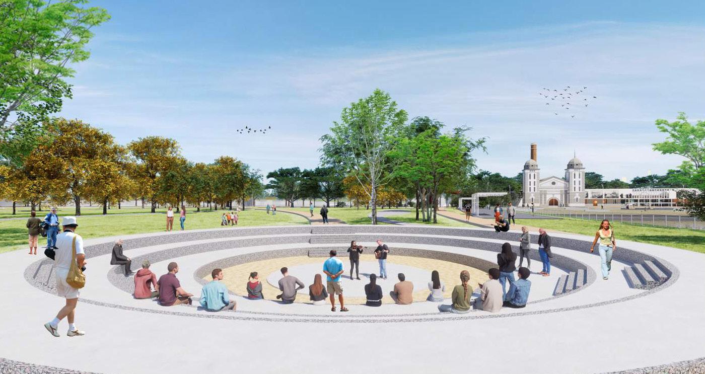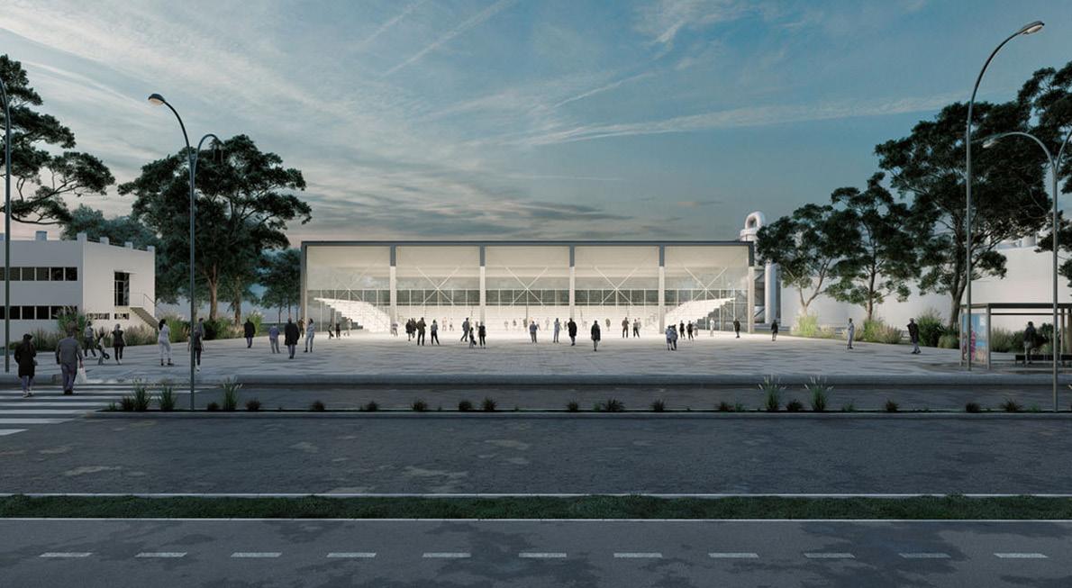 2/ Plaza cívica. Anfiteatro con espacios de encuentros, de participación ciudadana, de hall exterior de llegada, de reuniones vecinales, y todo tipo de manifestaciones necesarias para el desarrollo de las personas y la sociedad en su conjunto.