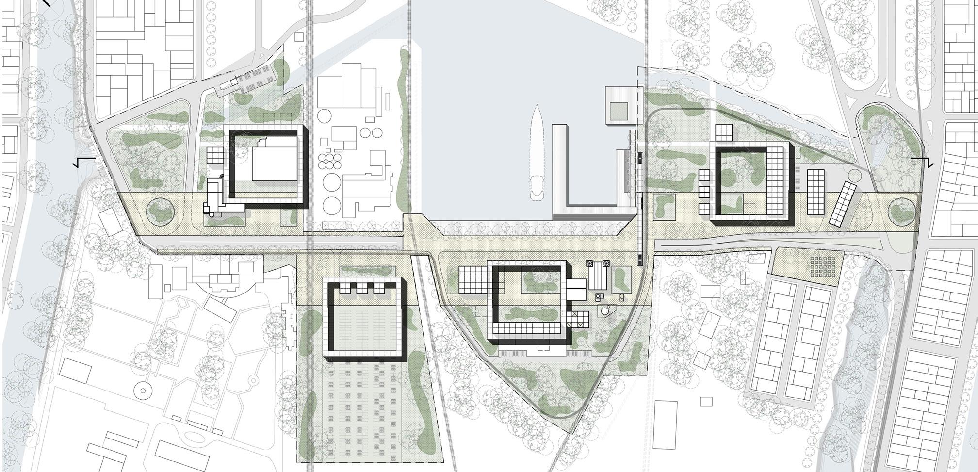 DIÁLOGOS CON EL VACÍO-EL VERDE. PAISAJISMO. Desde la visión de que medio natural y medio artificial conforman una unidad, se generan dos elementos de jerarquía, a partir de las cuales se resuelve la totalidad del sistema de aproximación y accesos a cada área del complejo, ofreciendo al usuario nuevos espacios de encuentro y convivencia en cada específica situación de uso.
