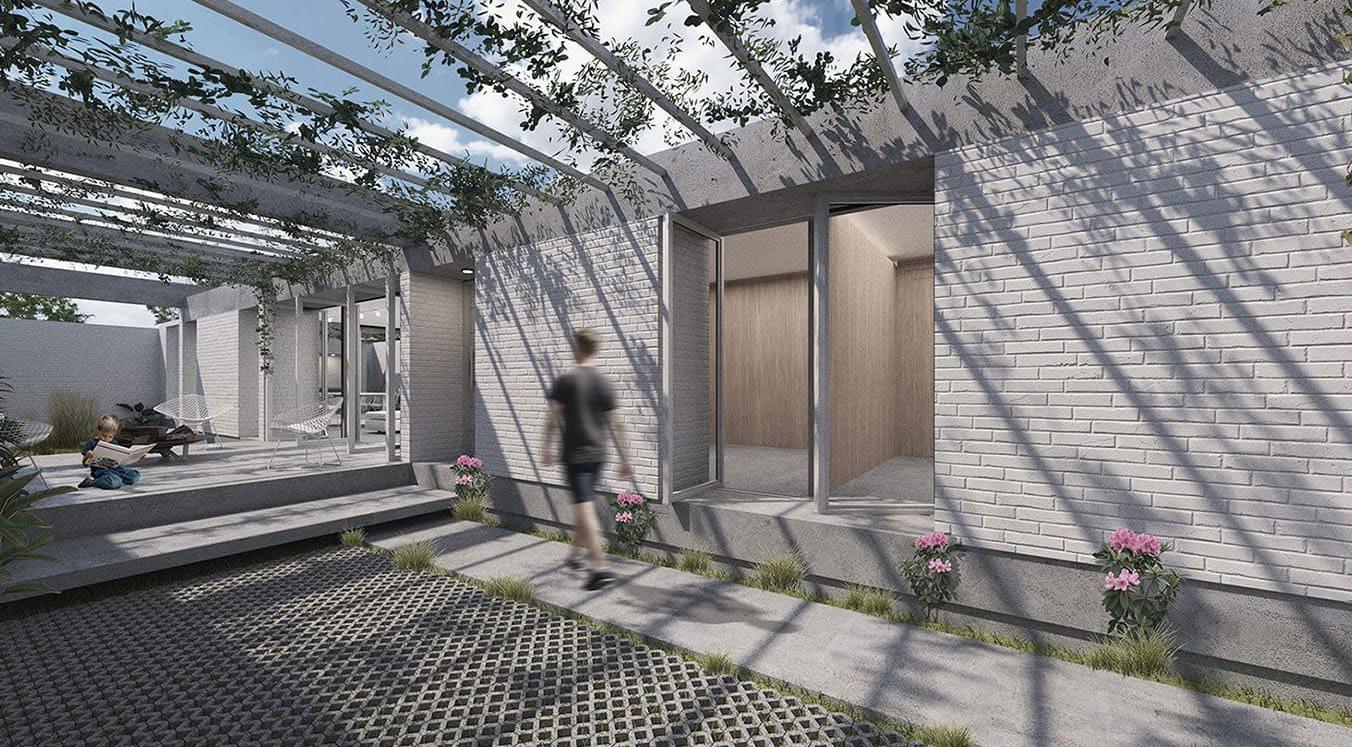 Diseñada para resolver las necesidades esenciales del habitar, el proyecto opta por una arquitectura honesta, donde cada elemento tiene una función específica y prescinde de adornos innecesarios. Inspirada en un enfoque racional y funcional, esta vivienda se desarrolla íntegramente en planta baja y se apoya en principios de modulación, ventilación cruzada y flexibilidad para responder a los desafíos de un terreno limitado y un presupuesto controlado.