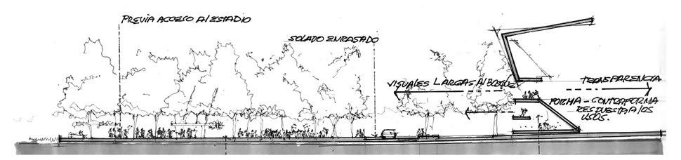 Esta arquitectura topográfica hace cuestionar las formas de uso y da la posibilidad de reinterpretar nuevos modos. La cubierta podría usarse como playón, grada o mirador; el semicubierto como lugar de encuentro, protección o laberinto. Cualquier opción dará como resultado un sistema de movimiento libre y fluido en el espacio que posibilita nuevas interpretaciones que el público aceptará, creará o, incluso, podrá modificar. La arquitectura se sumará al paisaje y posibilitará que cualquier forma que sirva al encuentro e intercambio social, será válida. Esta morfología, forma o apariencia está relacionada íntimamente con la ciudad: desde lo arquitectónico (moderno), la tradición (rambla), el paisaje (olas) y la movilidad (libre). Se consolida con