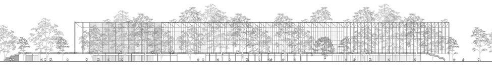 espacio continuo que integra tanto los usos públicos como privados. Esta banda está libre de interferencias estructurales, permitiendo una gran flexibilidad en su organización interna. Las tabiquerías son flexibles y pueden adaptarse o eliminarse según las necesidades del usuario. Tercera banda. De carácter mixto, esta banda define el acceso vehicular y peatonal a la vivienda, rematando en un patio verde que conecta la vivienda con el entorno natural. Pero también incorpora un espacio de expansión principal de carácter flexible, pudiendo absorber usos varios como ampliaciones, espacio para fogones, semicubiertos, espacio de trabajo/estudio, etc.