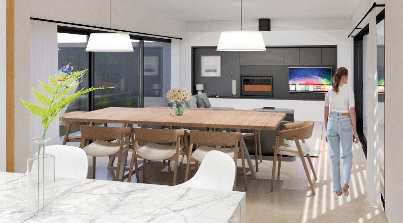 • Estar y cocina-comedor integrados, pensados como el núcleo social de la vivienda, donde la familia puede convivir en un ambiente amplio y luminoso.