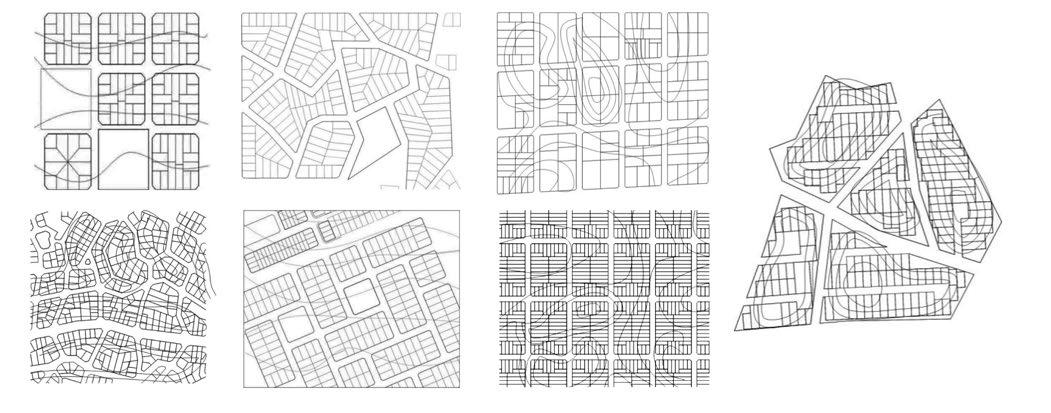 Trama regular, en damero, sin vinculación a la topografía, y parcelas de escaso frente (10 metros) y superficie variable. Insuficiente cesión de superficie para espacio público.
