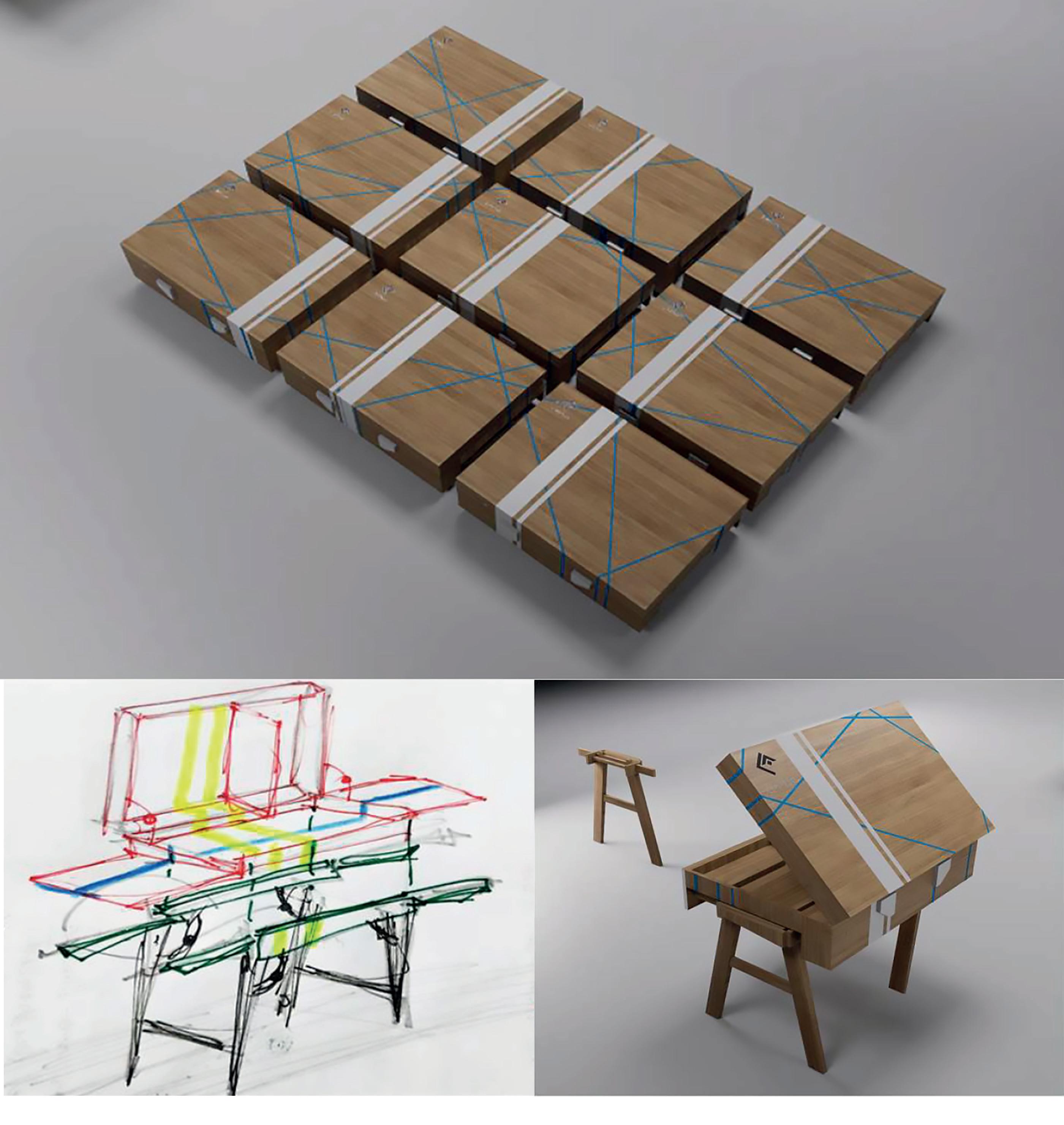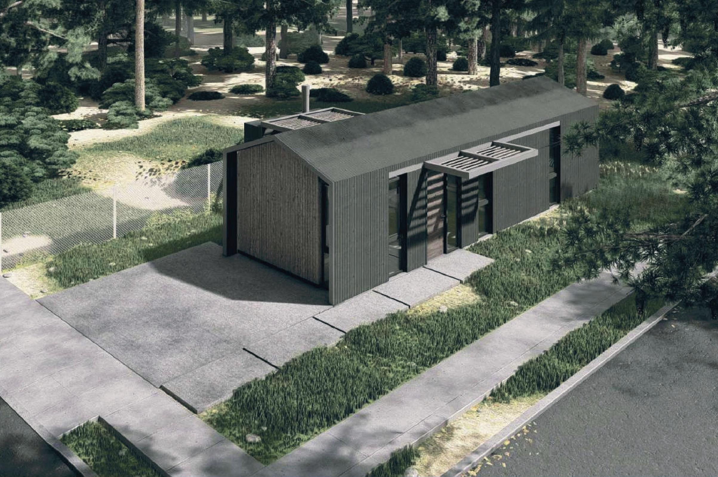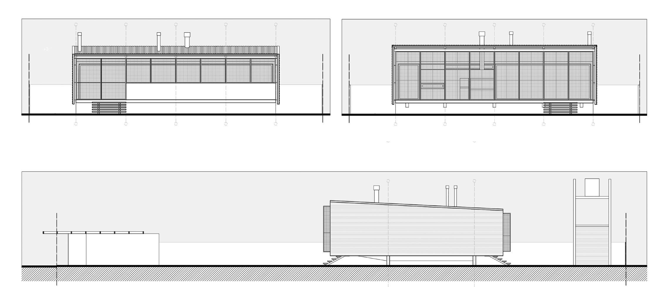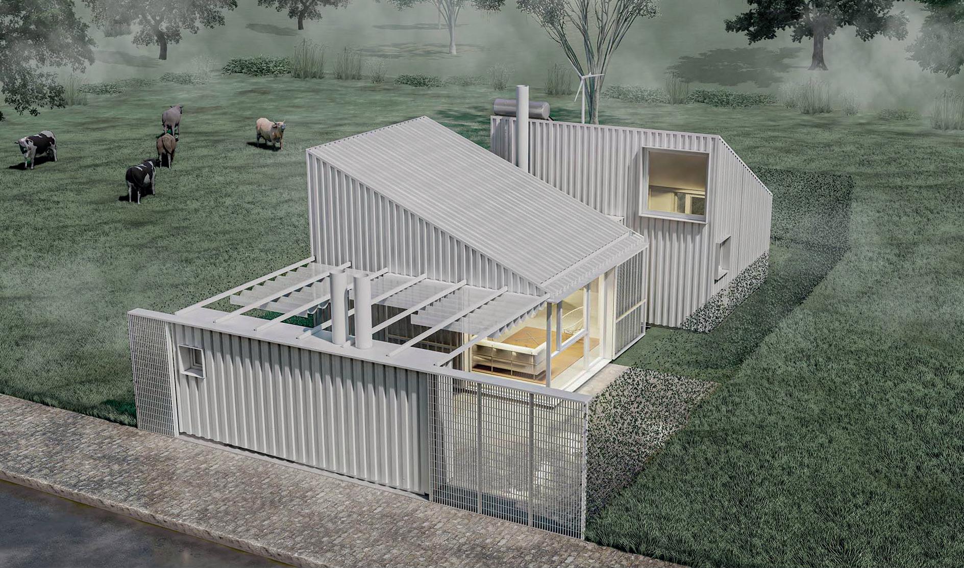 mado completamente en taller, o en piezas independientes que se ensamblan en el sitio. Los elementos fijos son de escala pequeña: el cuerpo sanitario, los módulos de equipamiento (integran áreas de servicio y mobiliario configurable). El resto se compone de paneles ciegos, carpinterías y estructuras de transición. El hábitat inicial ofrece una solución primaria (60 m2), que permite el inicio del ciclo, y a partir de esa primera operación, el sistema aporta multiplicidad de variantes acoplando módulos que se adosan hacia el frente tanto como hacia arriba, hasta conformar una unidad de máxima, que ronda los 155 metros cuadrados cubiertos
