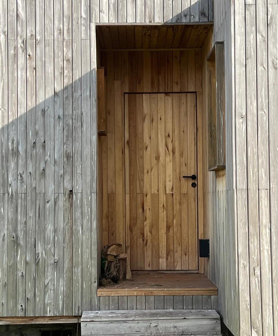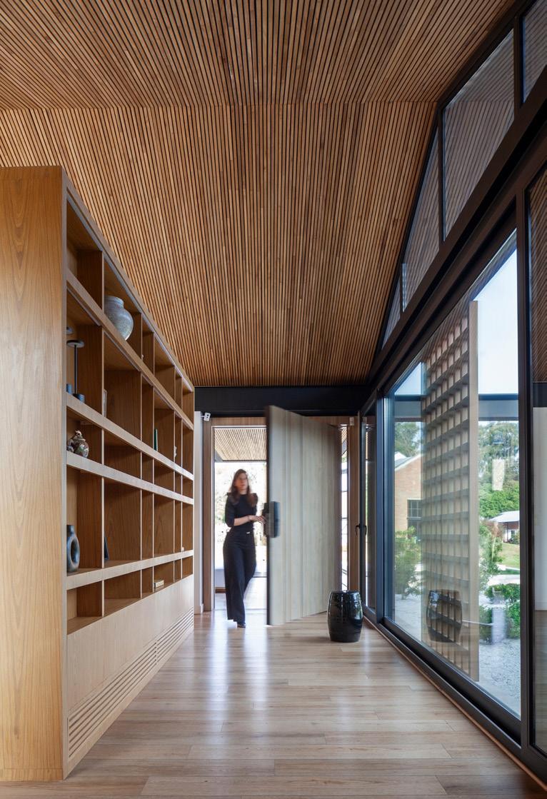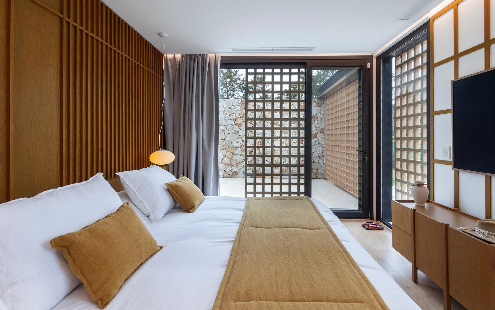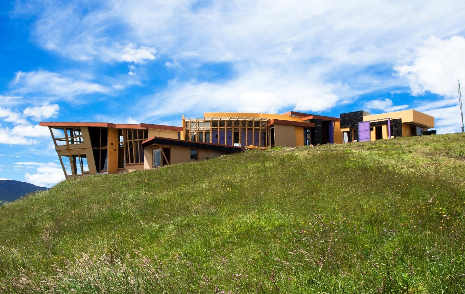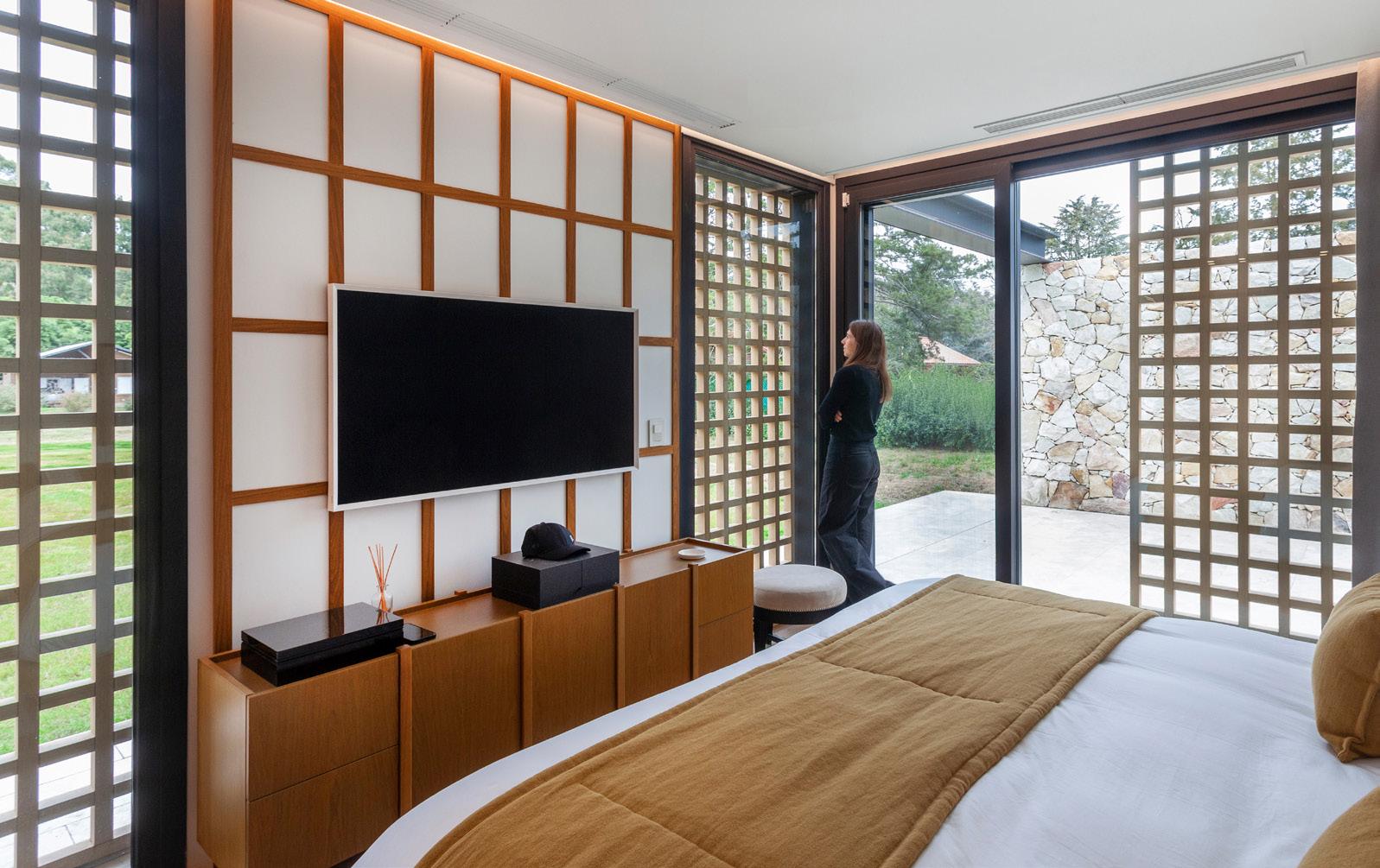 Todos los materiales conservan sus acabados y texturas naturales. La cubierta de estructura de madera -constituida por vigas y correas de eucalipto- y chapa acanalada a dos aguas, garantiza el rápido escurrimiento. Asimismo, la madera es el material de los aventanamientos, que cuentan con paños fijos o móviles, y con doble vidriado hermético.