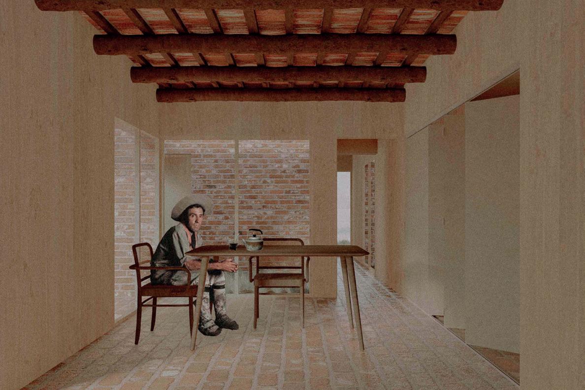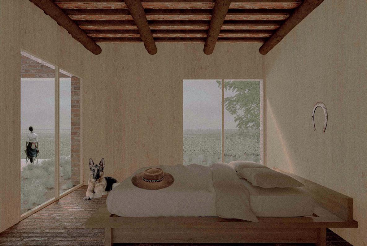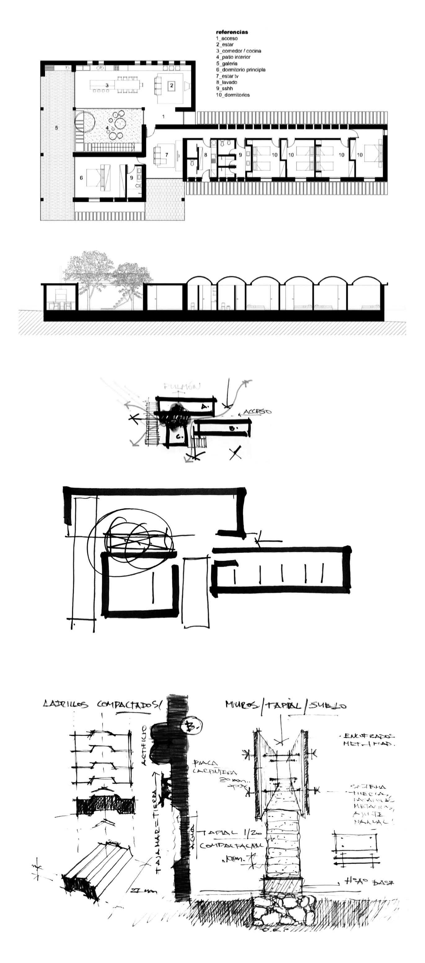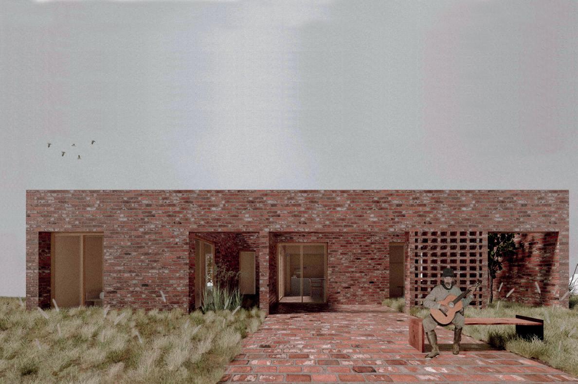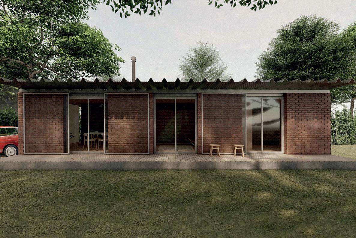 La vivienda que pensamos surge a partir de una serie de muros portantes de mampuesto conformados por ladrillos comunes, los cuales organizan los espacios de la vivienda en dos áreas, una social y otra de descanso.
