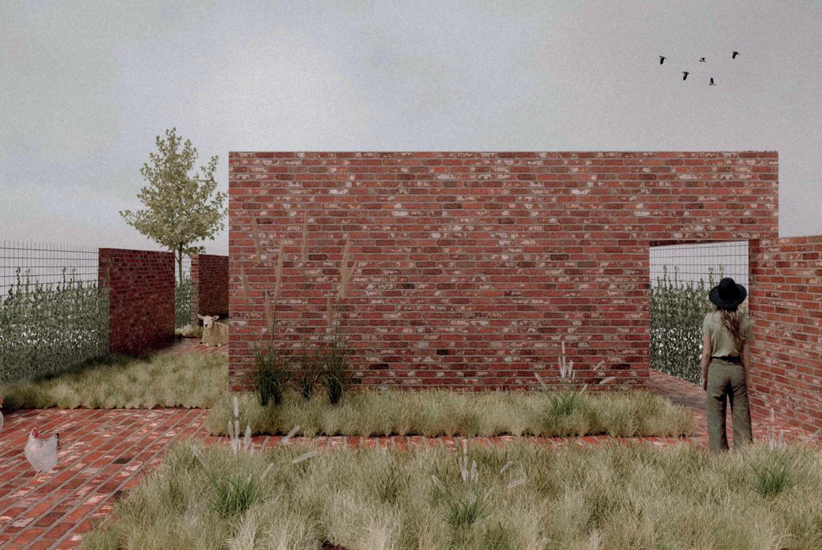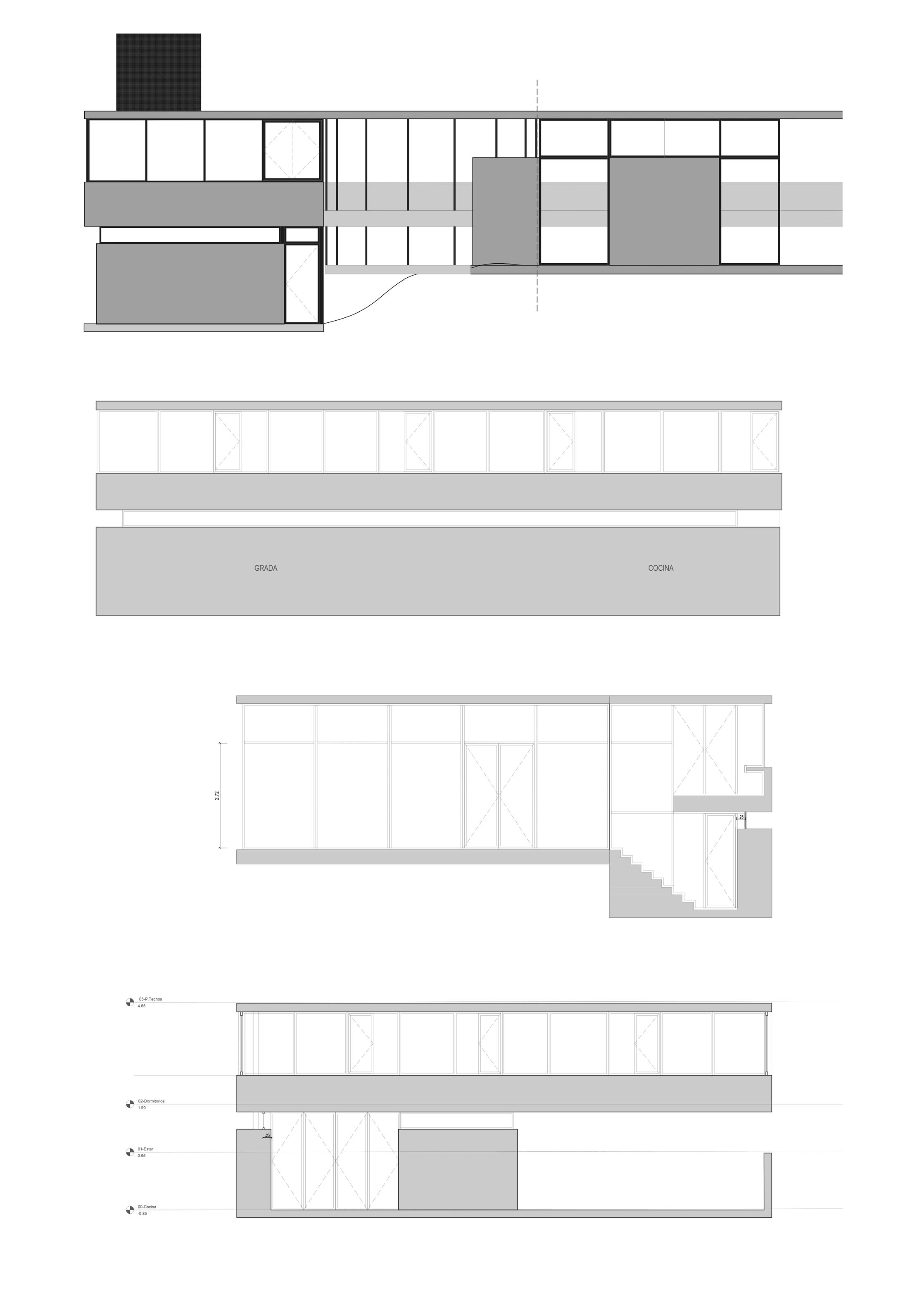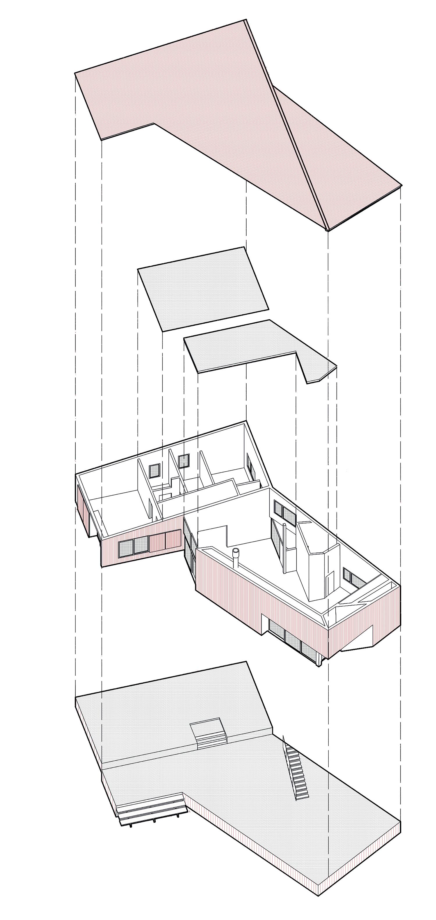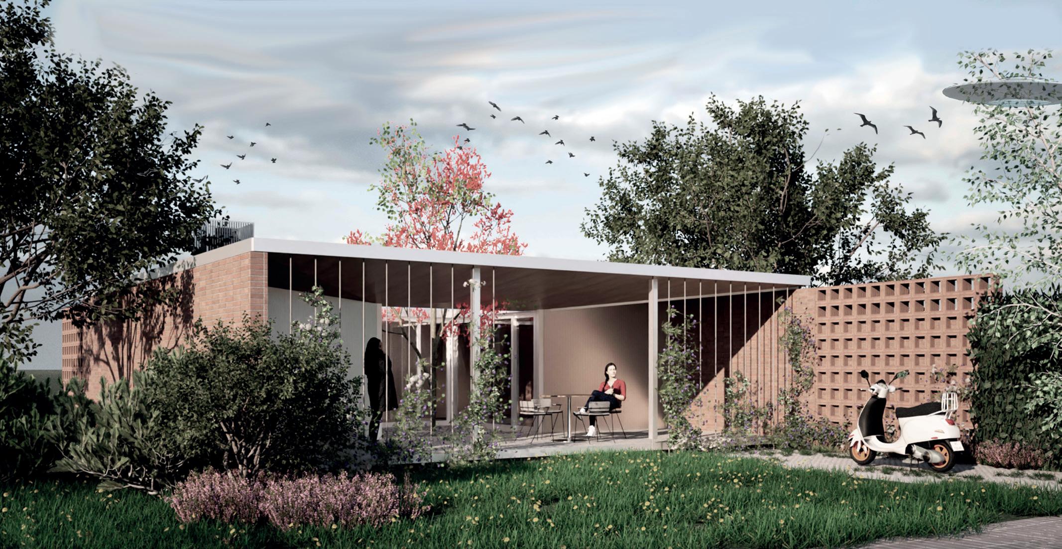 La vivienda que pensamos surge a partir de una serie de muros portantes de mampuesto conformados por ladrillos comunes, los cuales organizan los espacios de la vivienda en dos áreas, una social y otra de descanso.