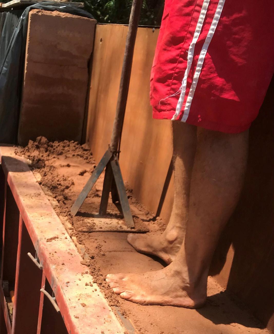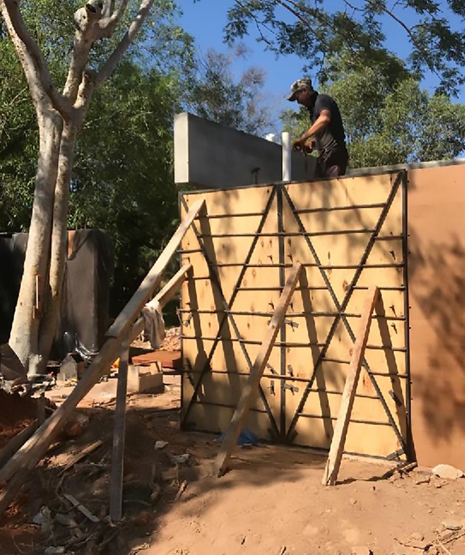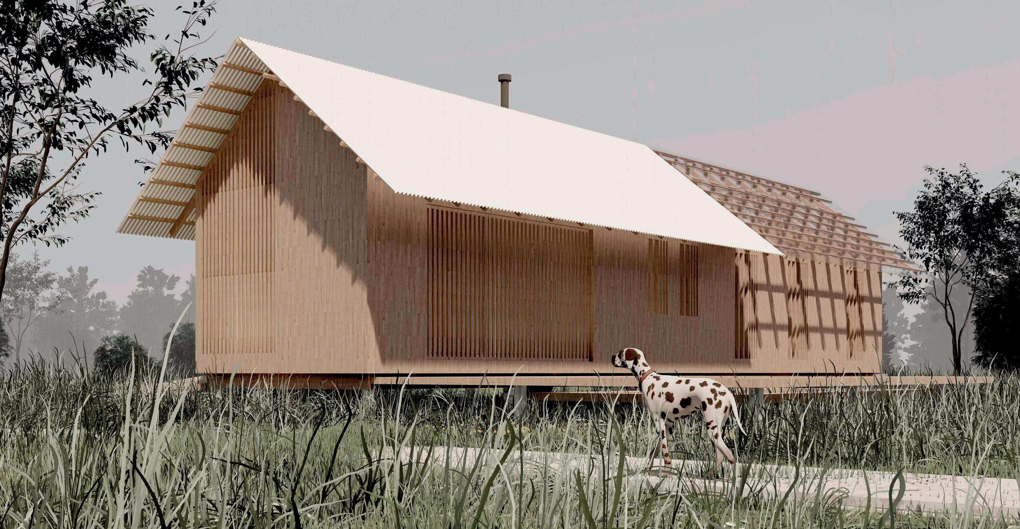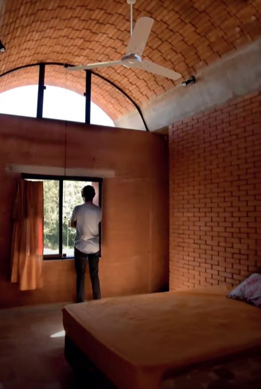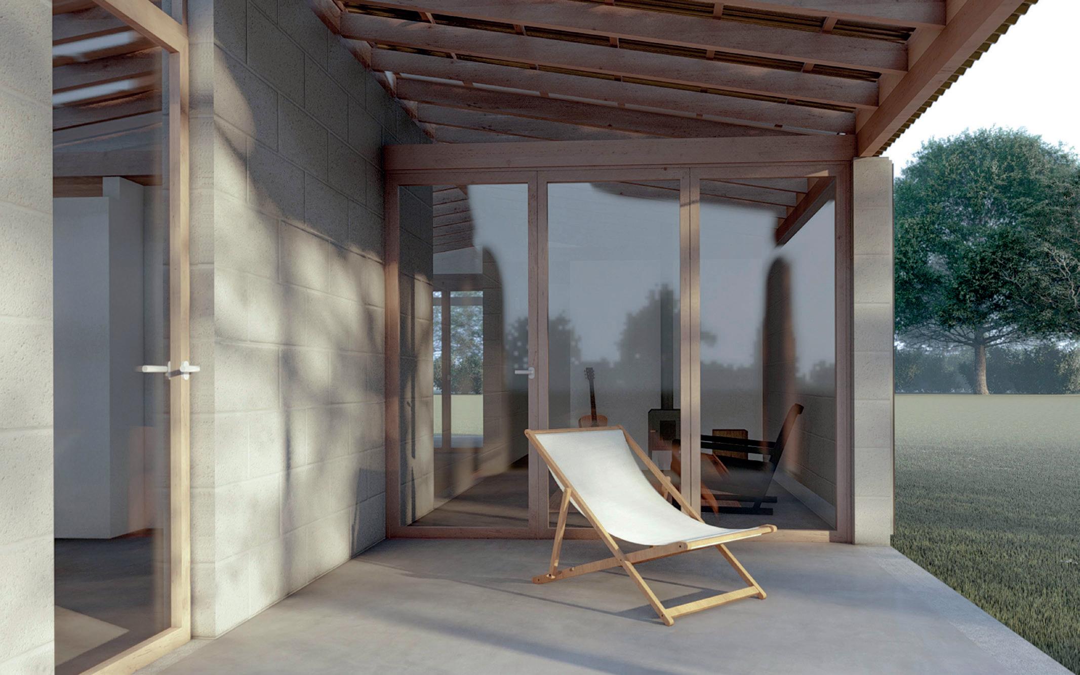 La materialización busca la eficiencia funcional, económica y ambiental utilizando solo los materiales imprescindibles para la construcción del espacio habitable con los recursos disponibles en cualquier pueblo y tecnología simple de albañilería tradicional: bloques de hormigón celular, tirantes de madera, chapa de zinc,