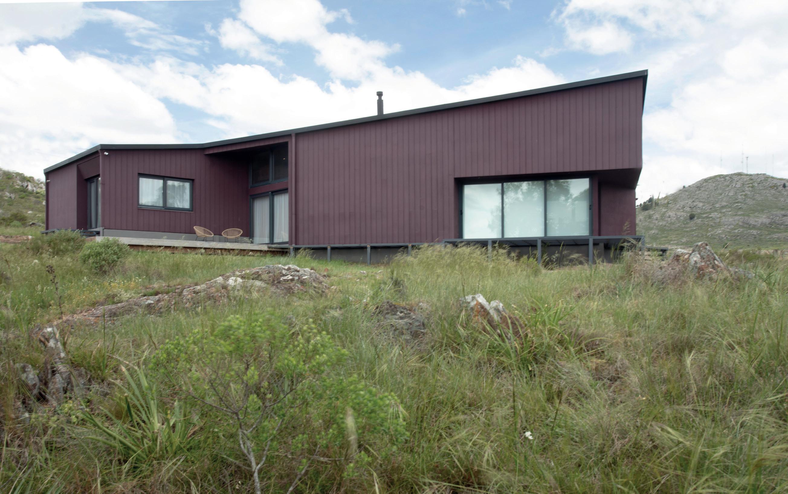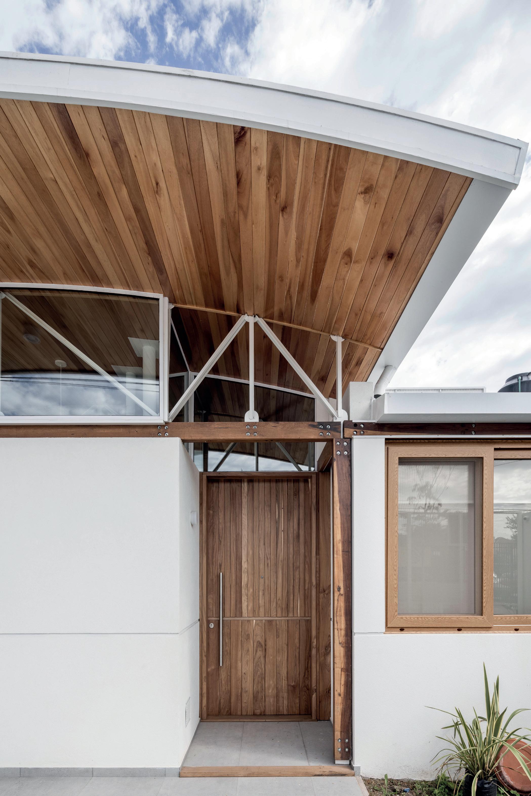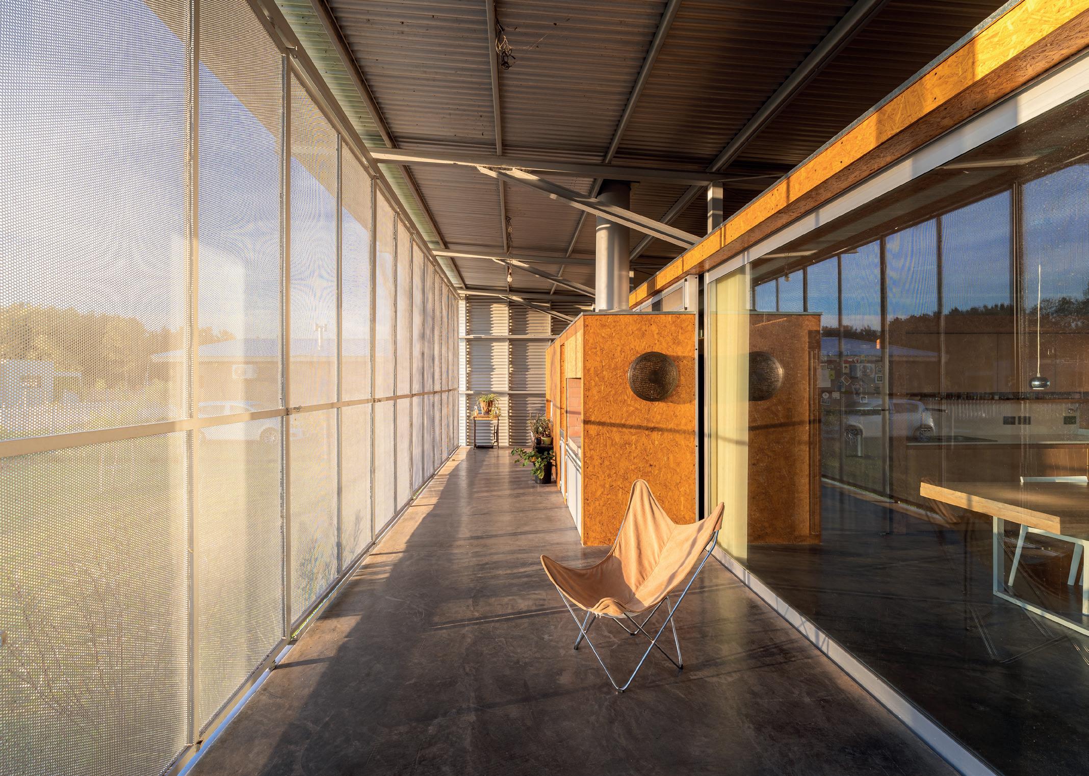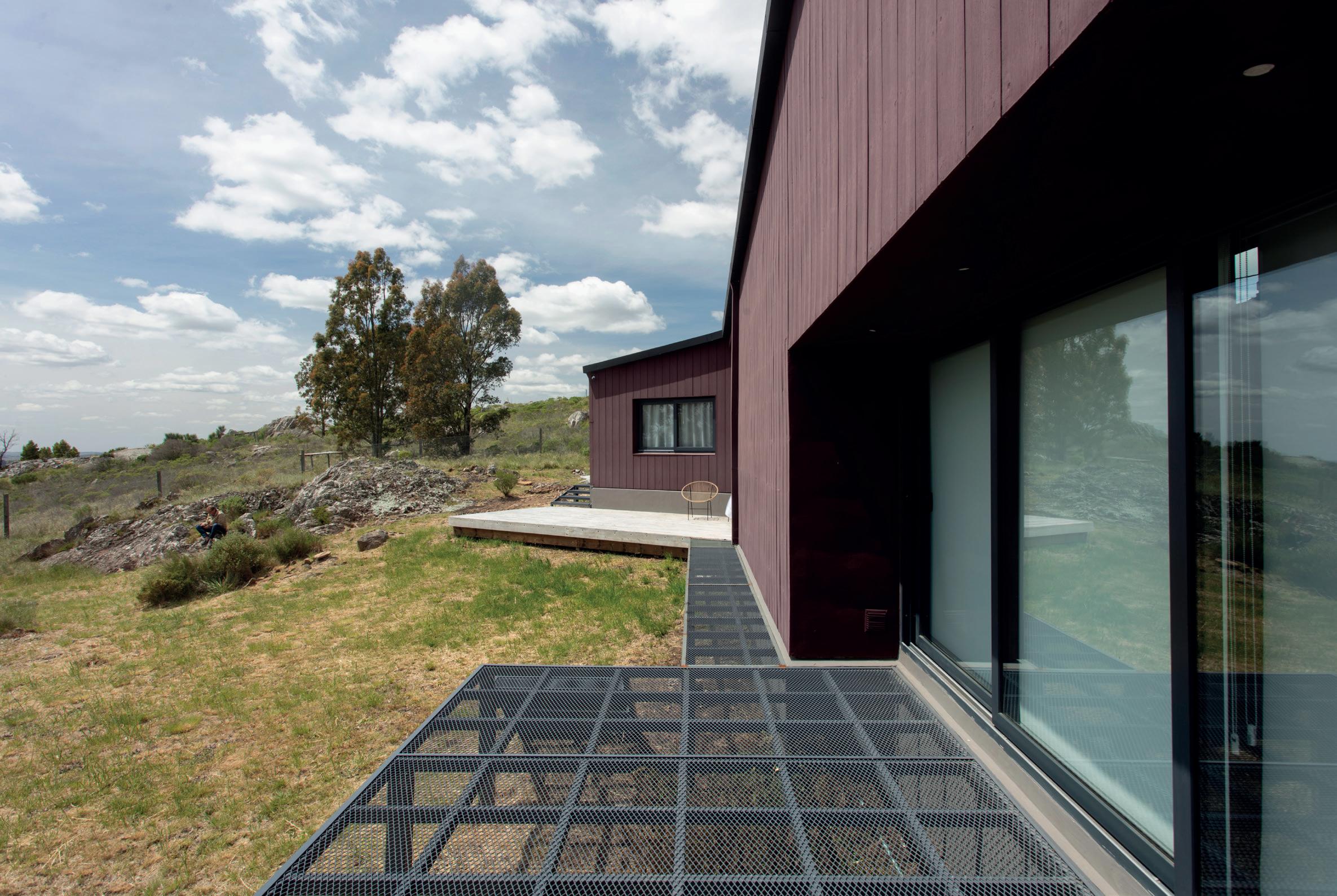 Los cerramientos corredizos de chapa acanalada controlan la radiación solar y las lluvias, y permiten cerrar la casa de manera completa en periodos de ausencia.
