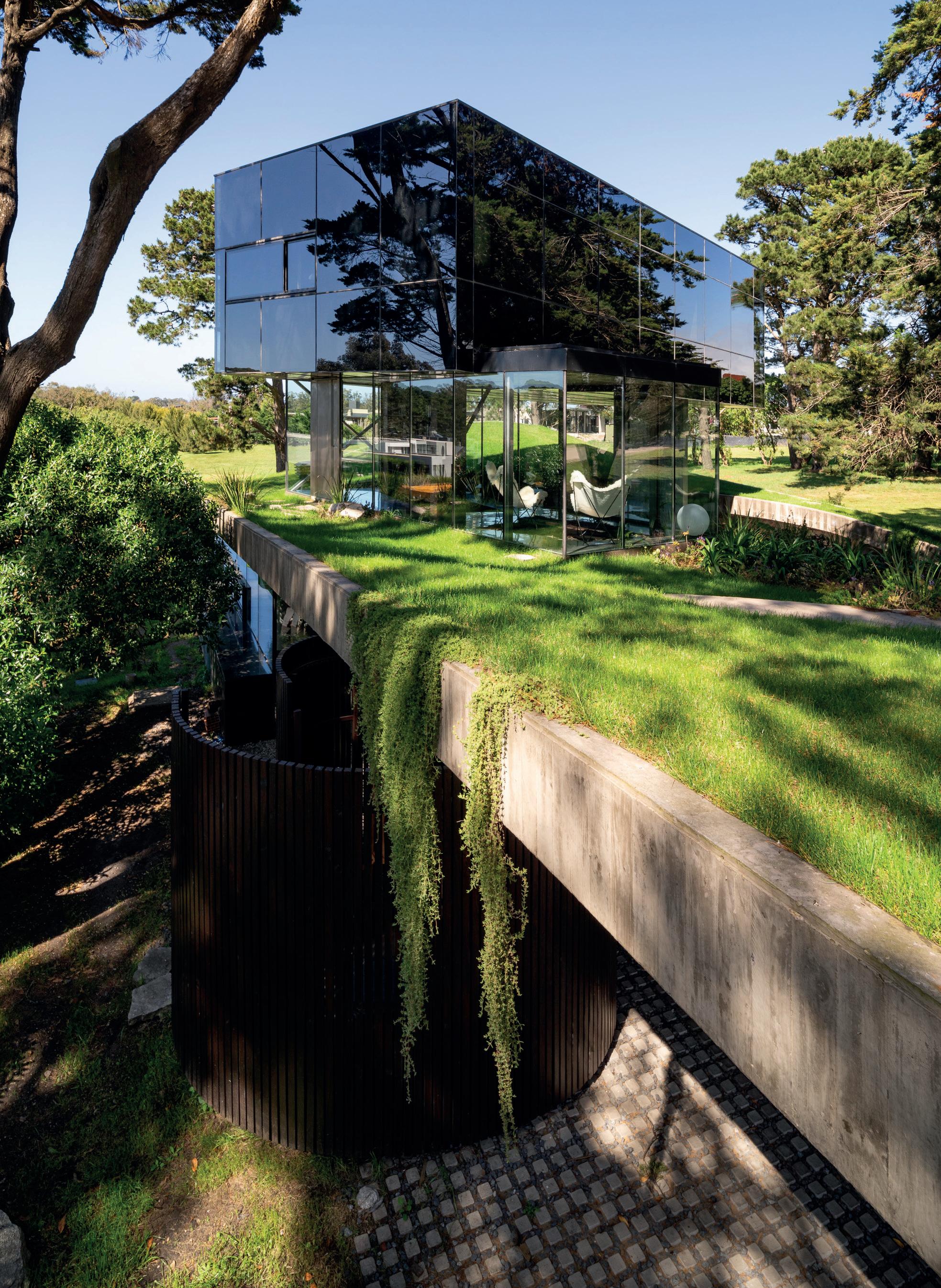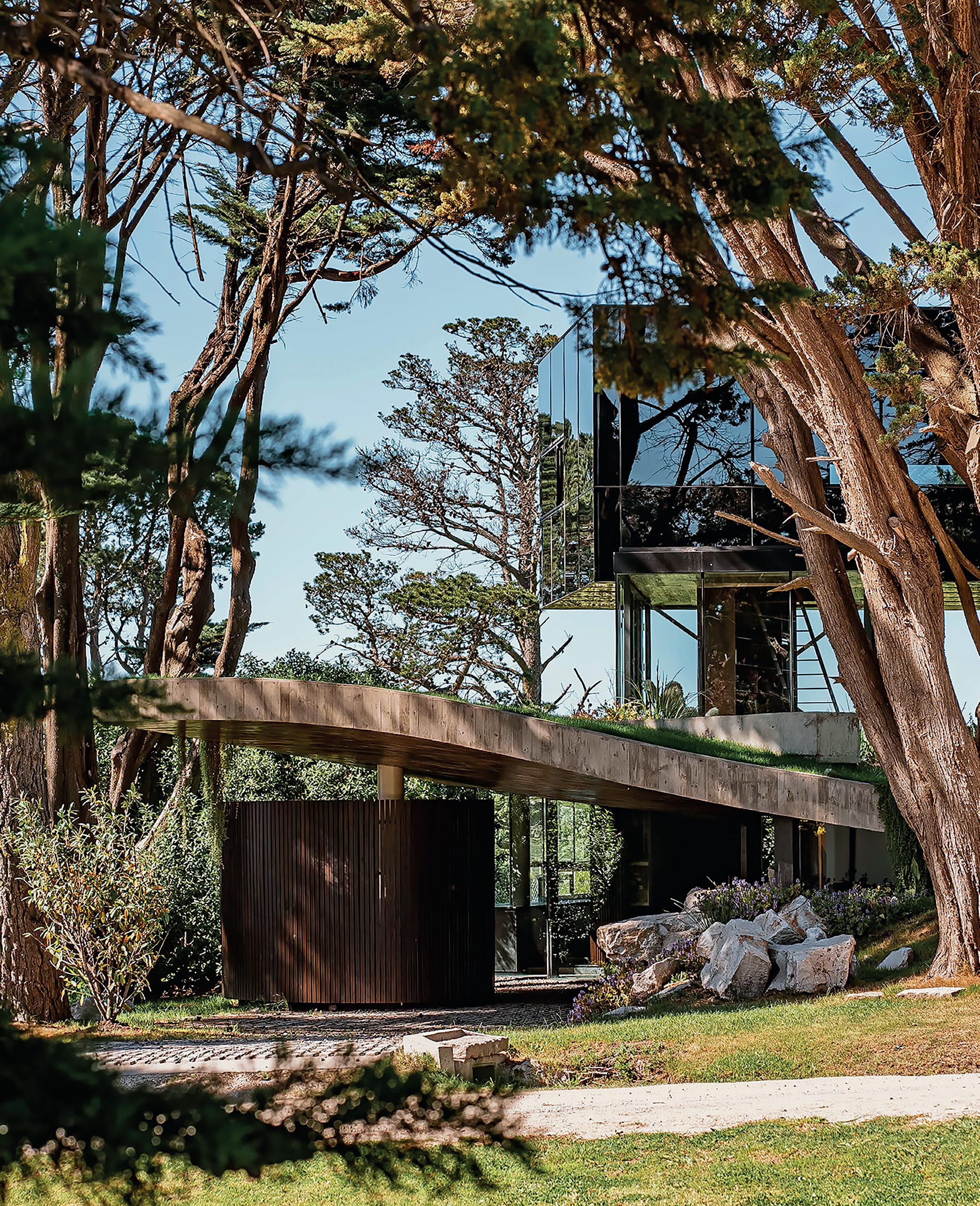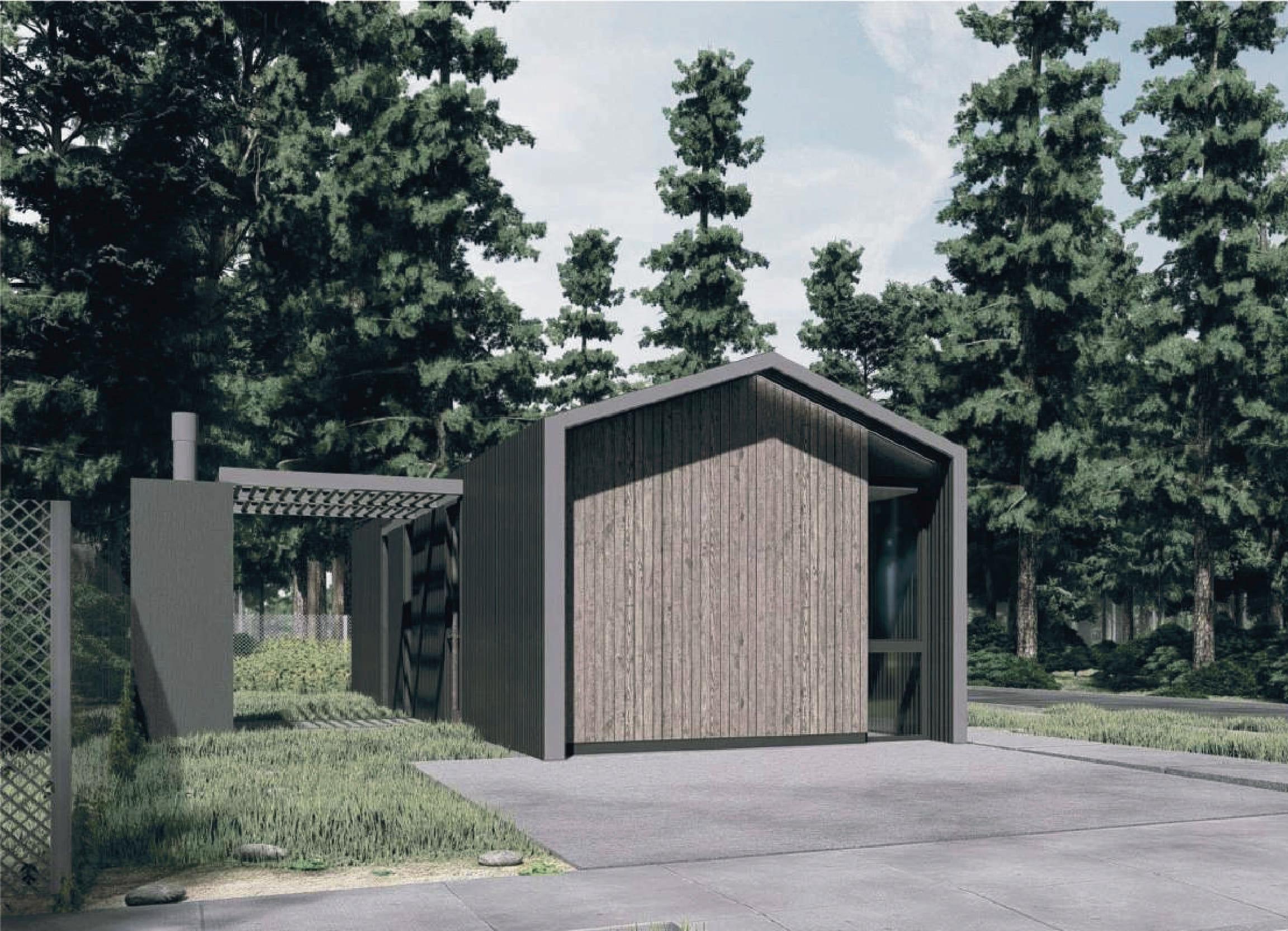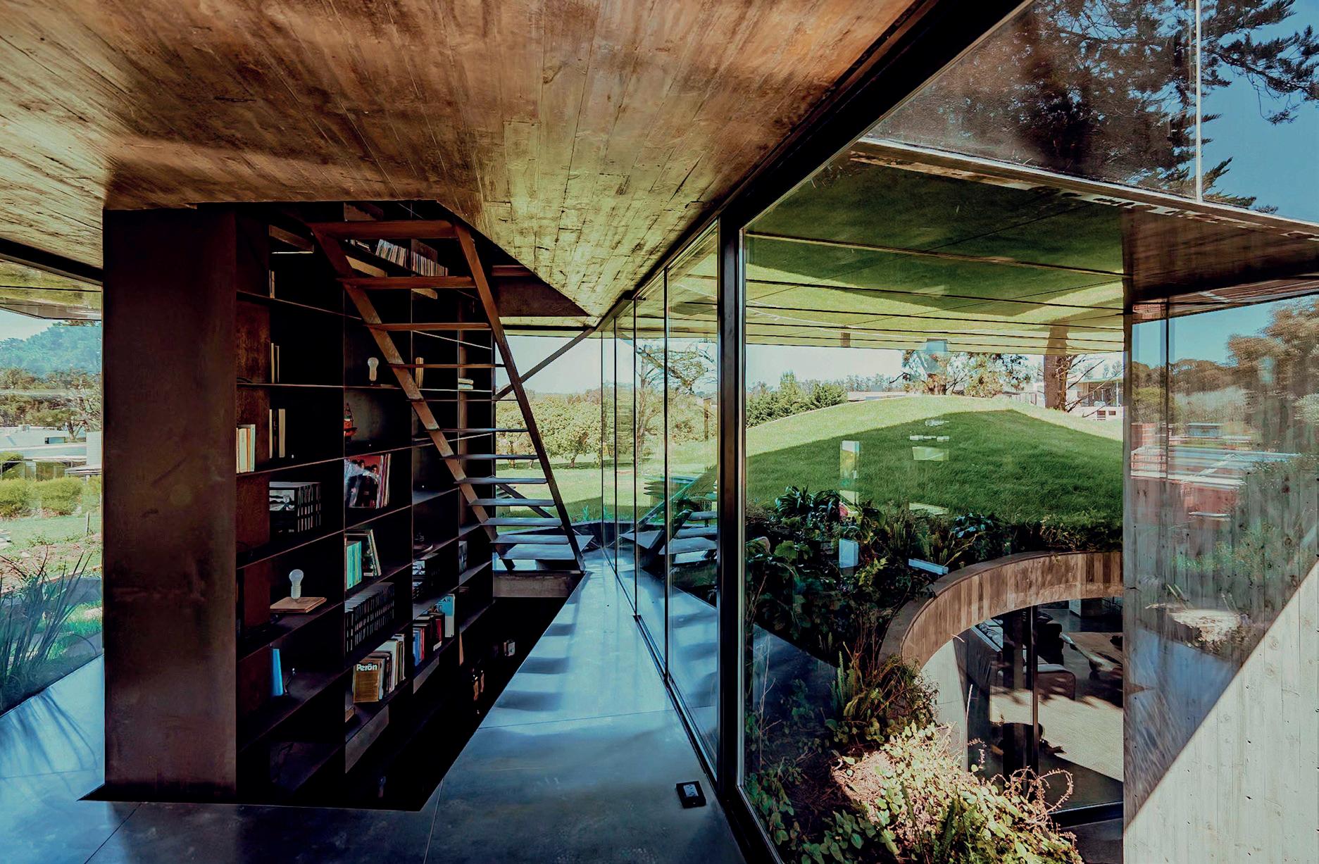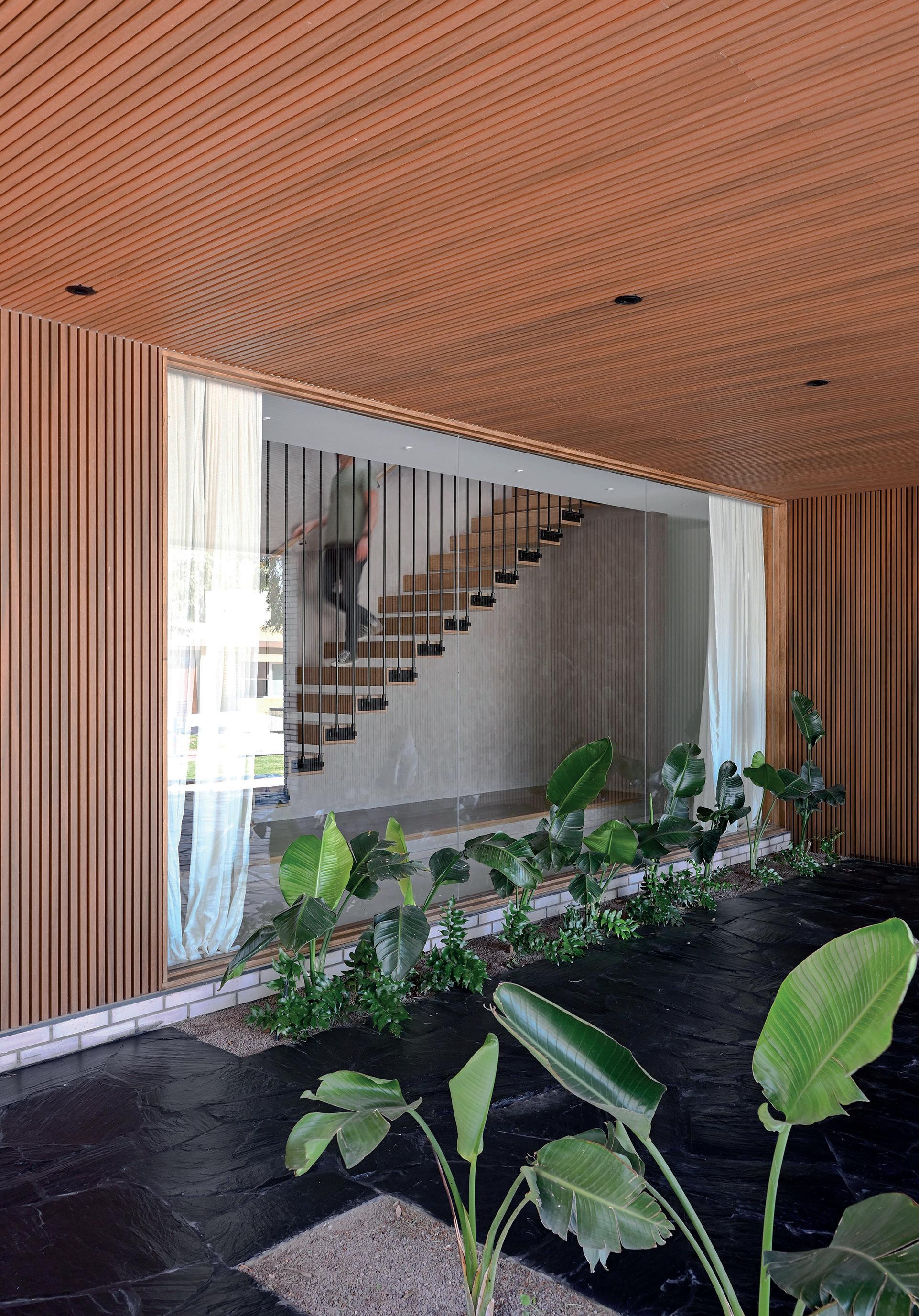 Los cerramientos corredizos de chapa acanalada controlan la radiación solar y las lluvias, y permiten cerrar la casa de manera completa en periodos de ausencia.