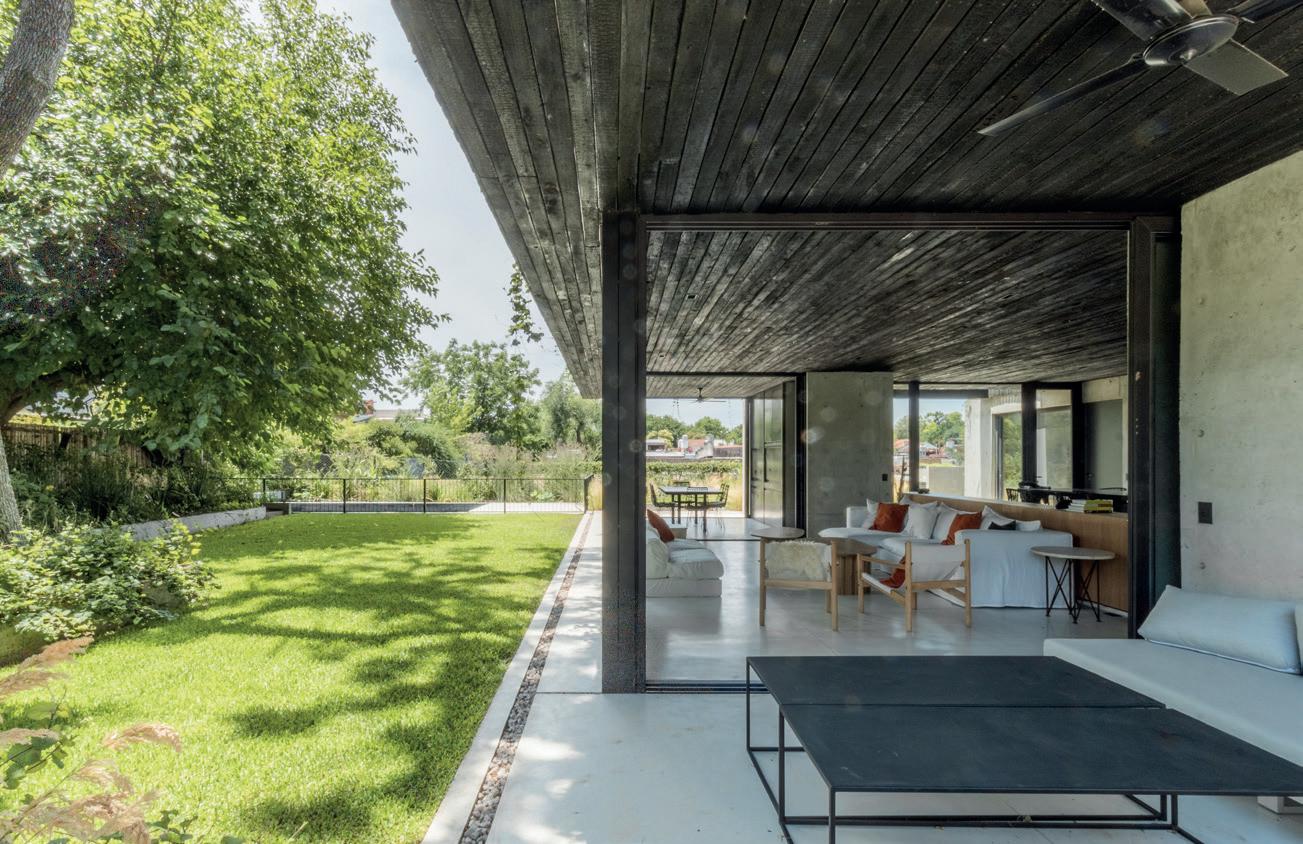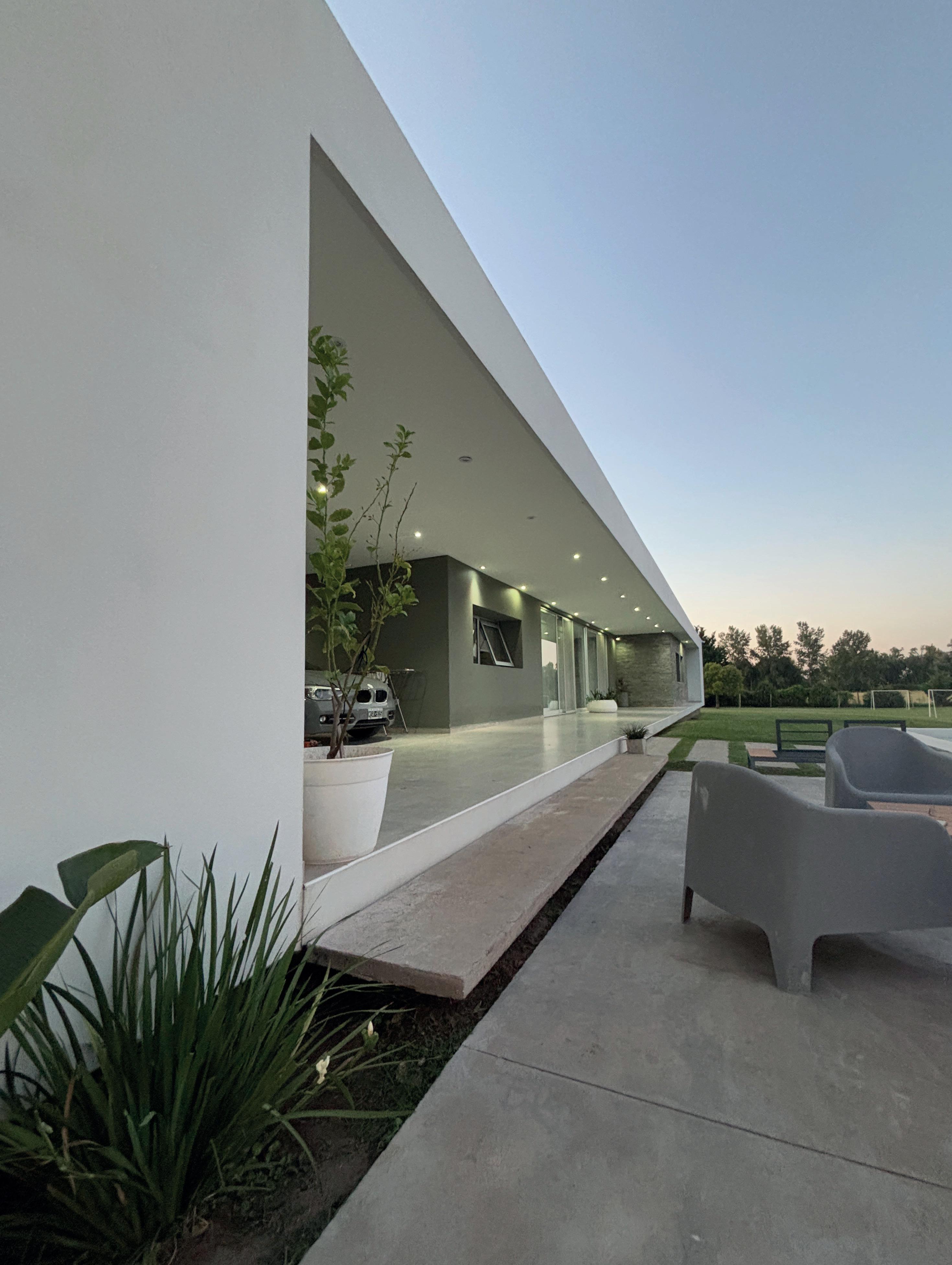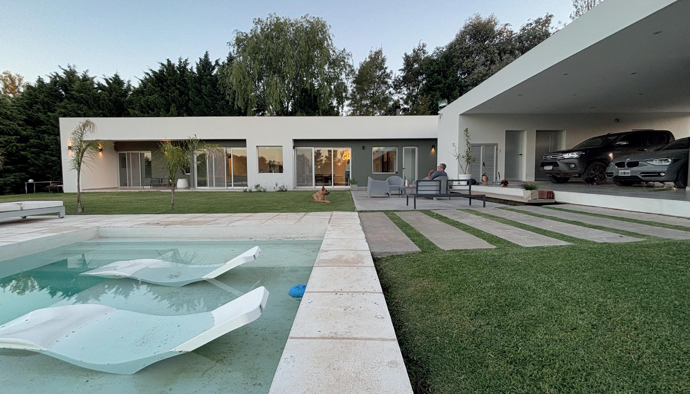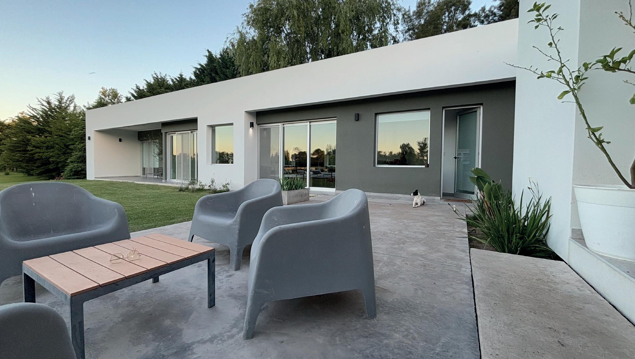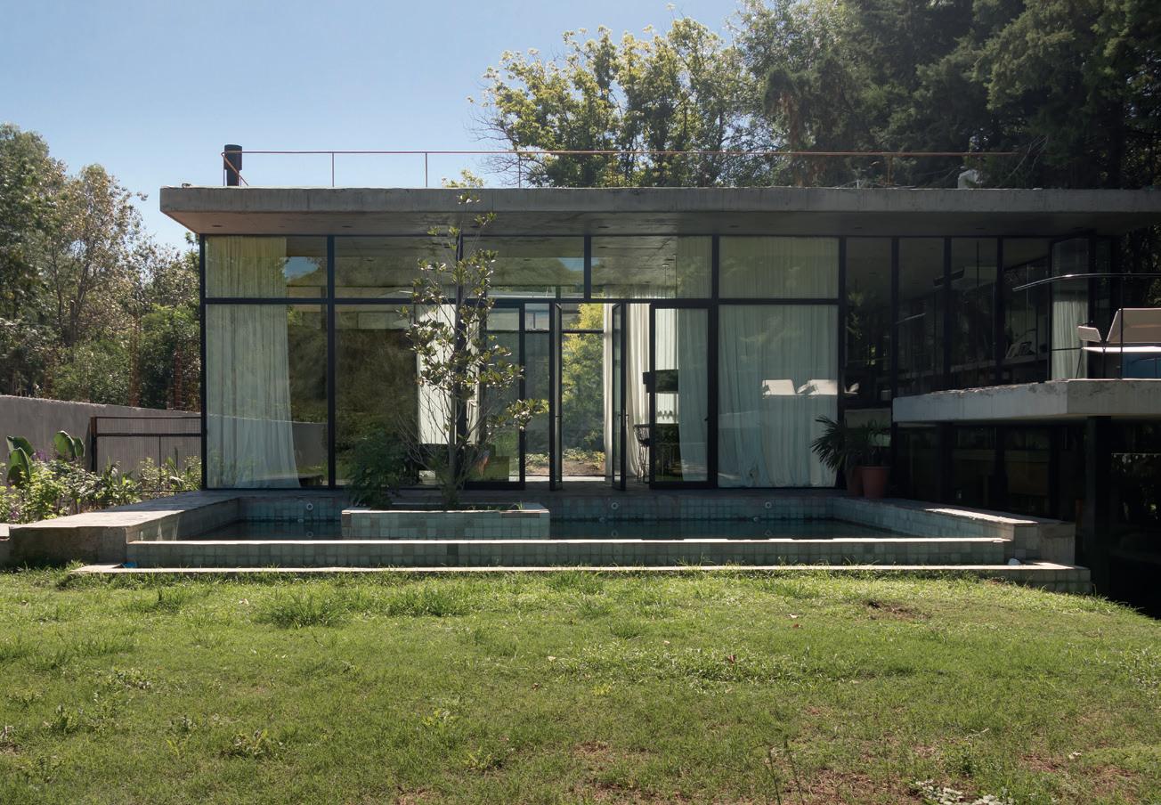 Una casa de campo donde los espacios de transición entre interior y exterior resuelven la cuestión climática y programática. Protegen el interior del sol en días calurosos de verano y permiten la captación solar directa en invierno, lo defienden de las lluvias abundantes típicas de la región pampeana norte, protegen de los vientos dominantes y estimulan la ventilación cruzada. En cuanto al programa, el espacio social central refuerza la autonomía de todos los espacios de la casa, que se comunican a través de los semicubiertos, consolidando la relación con el exterior.