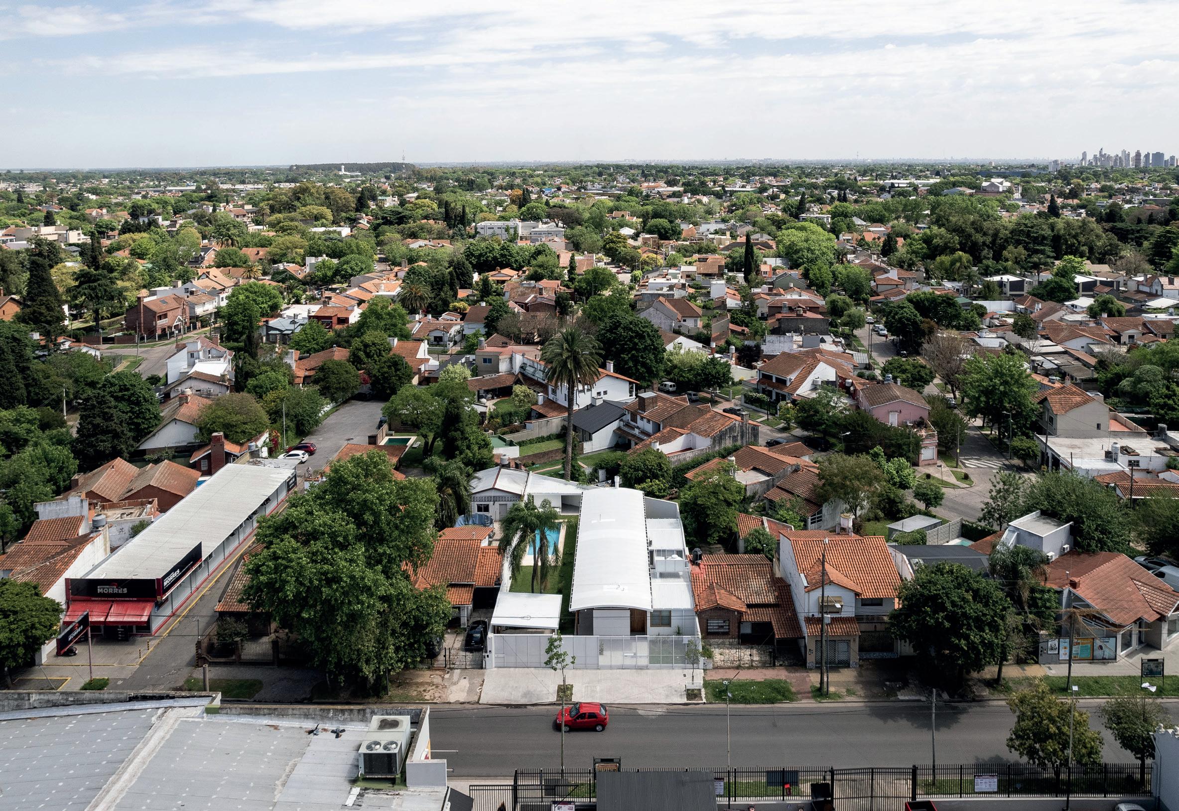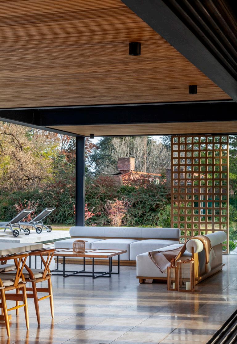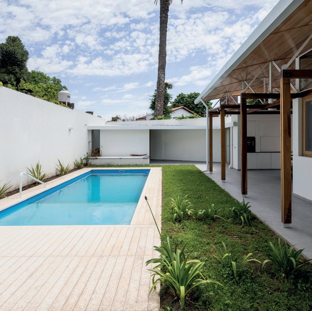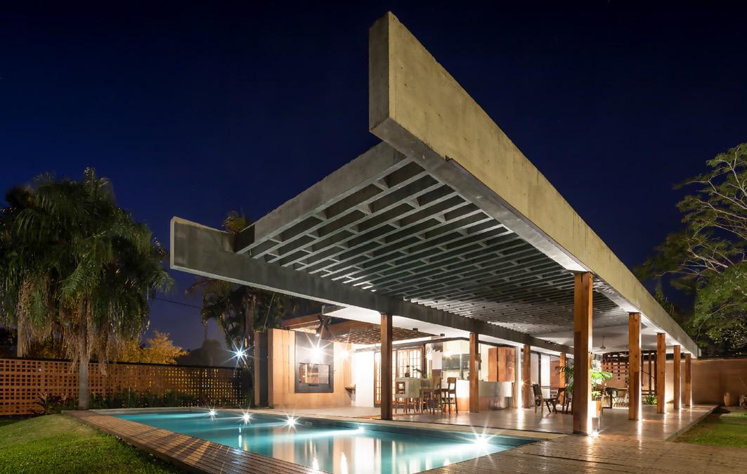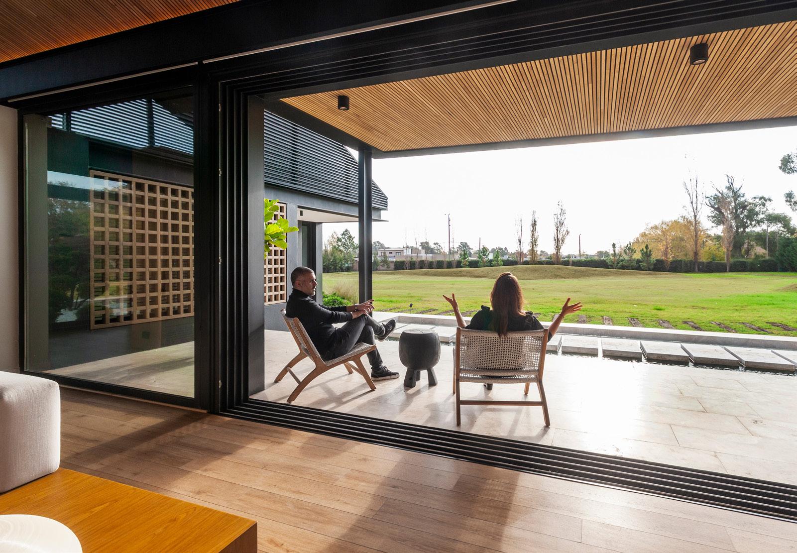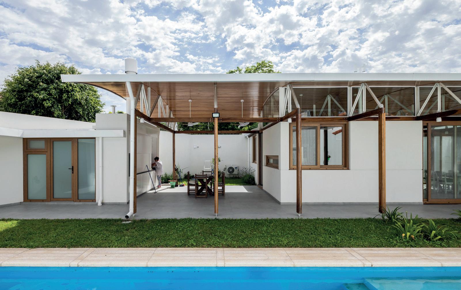 Una casa de campo donde los espacios de transición entre interior y exterior resuelven la cuestión climática y programática. Protegen el interior del sol en días calurosos de verano y permiten la captación solar directa en invierno, lo defienden de las lluvias abundantes típicas de la región pampeana norte, protegen de los vientos dominantes y estimulan la ventilación cruzada. En cuanto al programa, el espacio social central refuerza la autonomía de todos los espacios de la casa, que se comunican a través de los semicubiertos, consolidando la relación con el exterior.