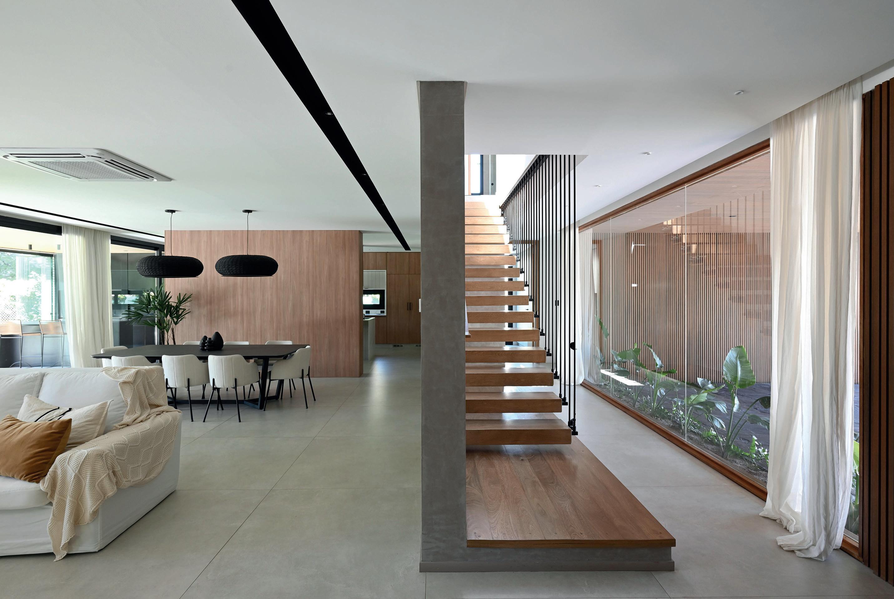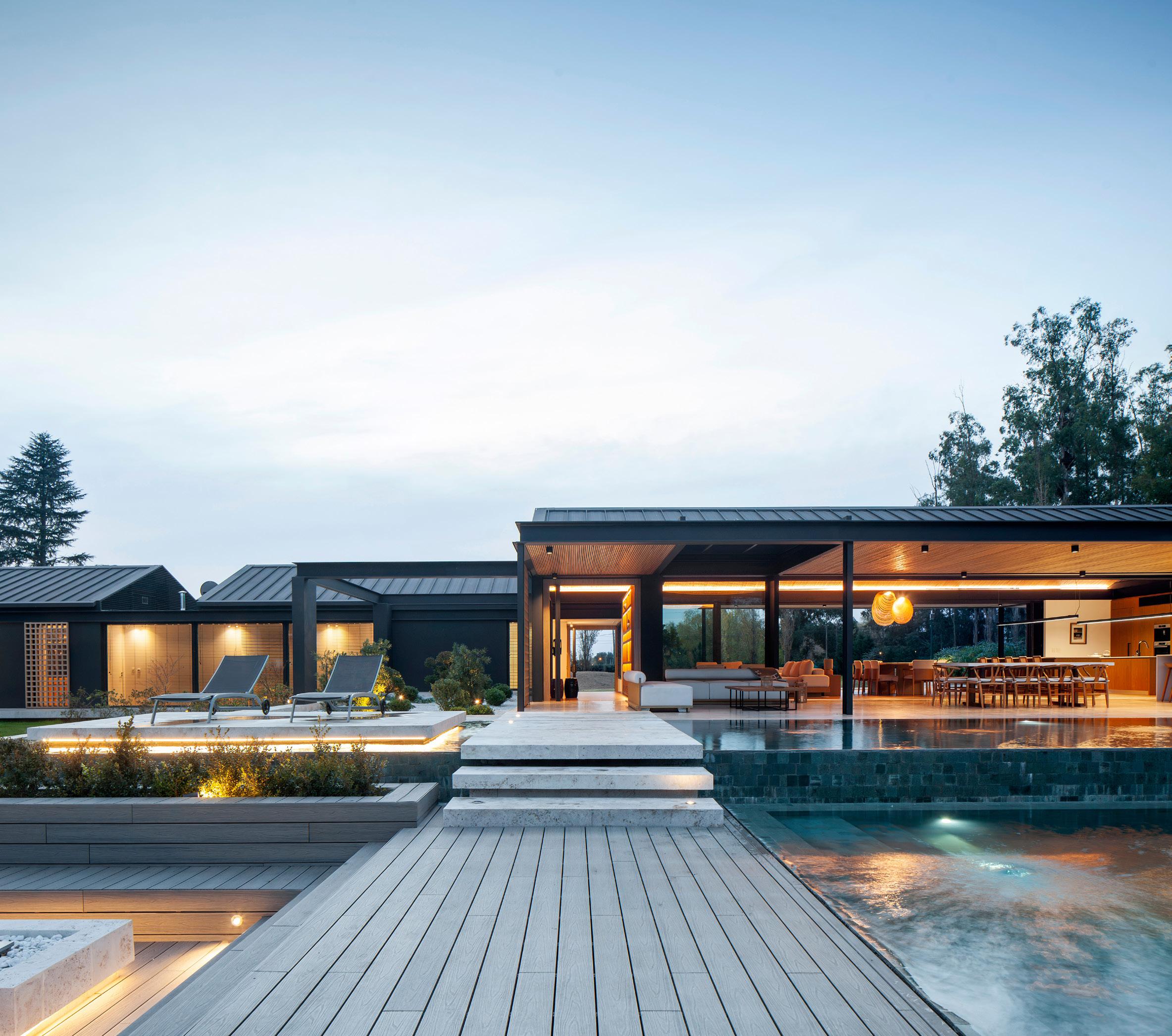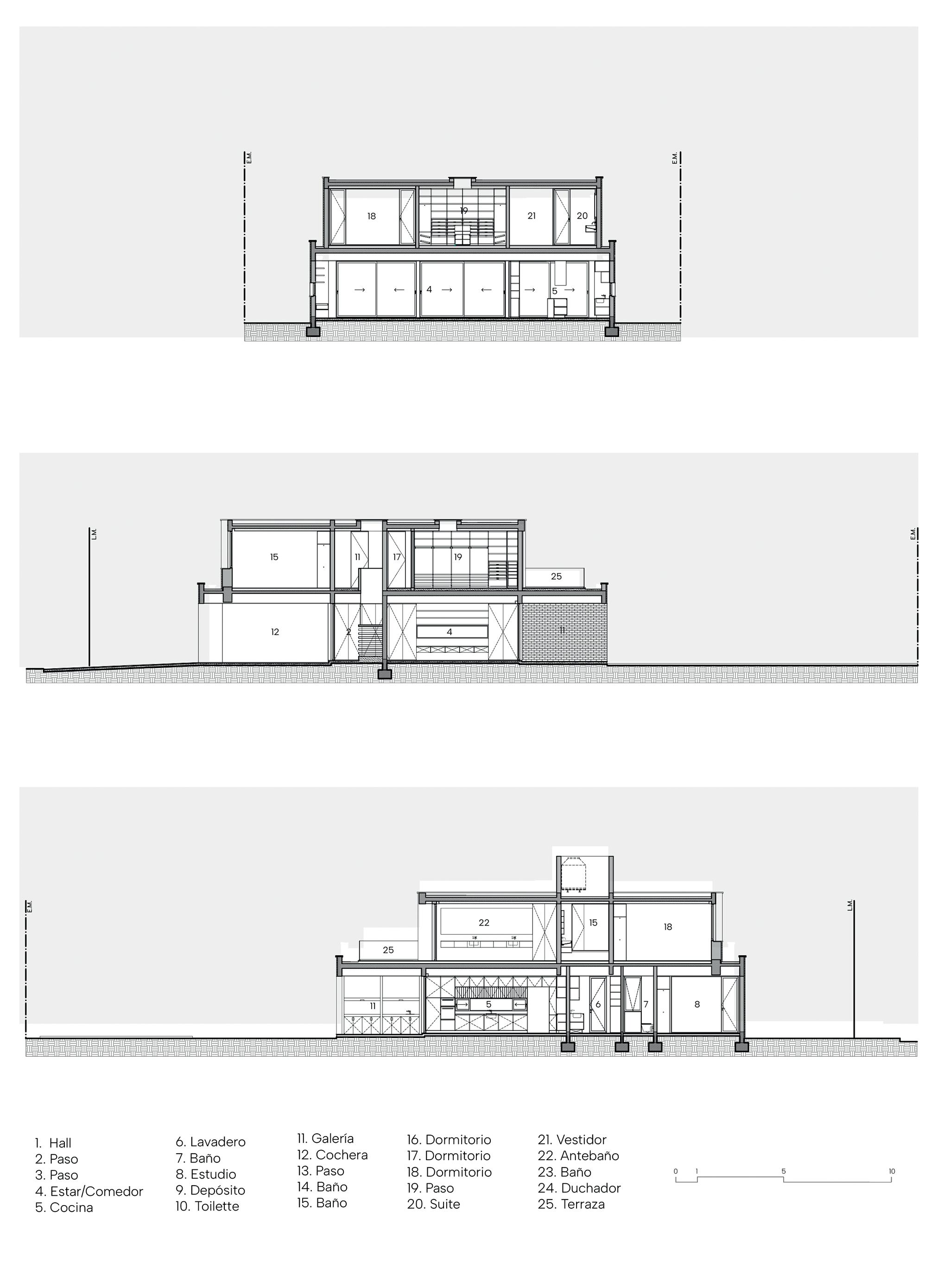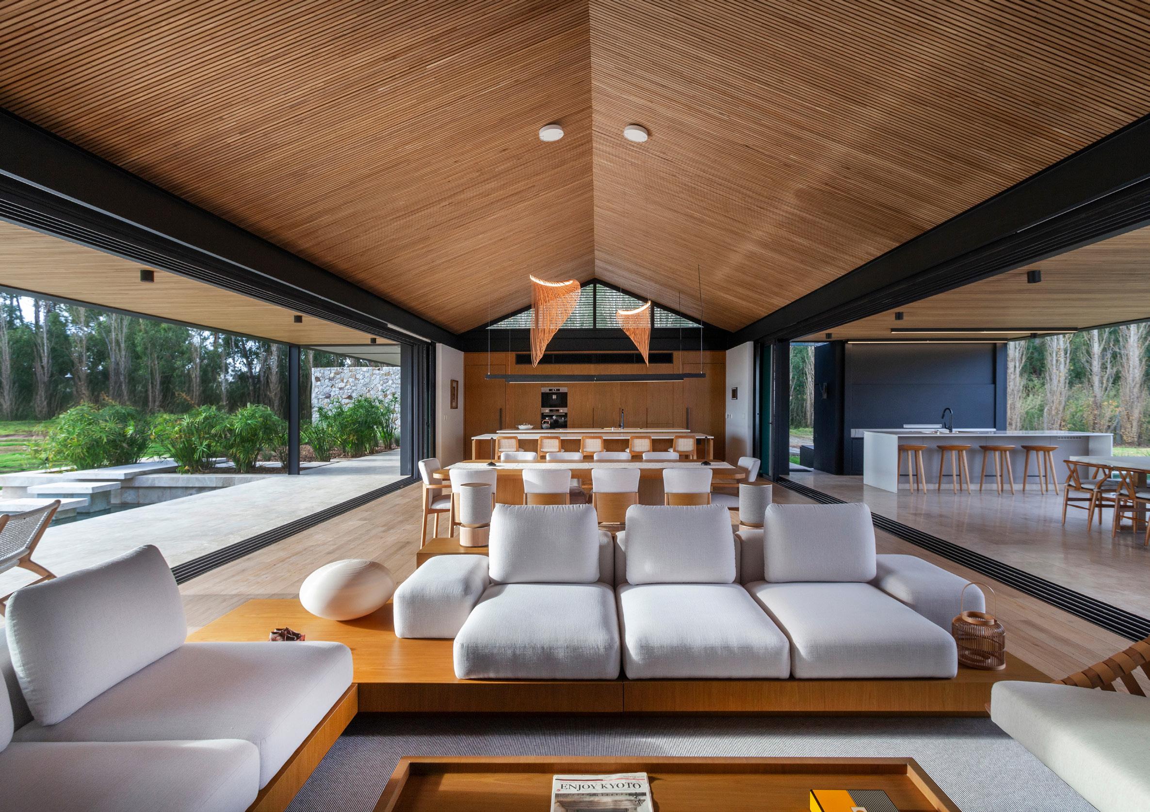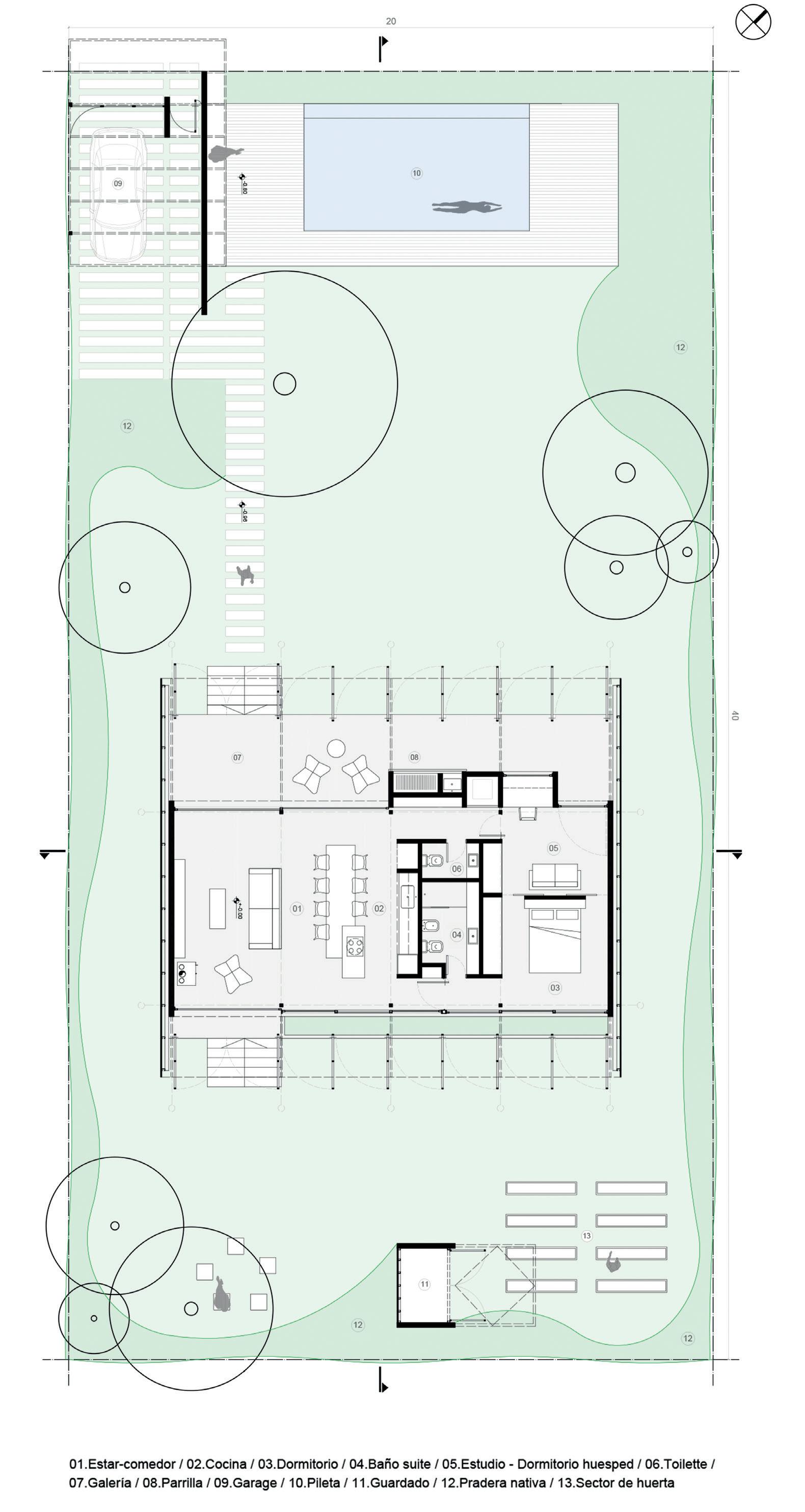 Una casa de campo donde los espacios de transición entre interior y exterior resuelven la cuestión climática y programática. Protegen el interior del sol en días calurosos de verano y permiten la captación solar directa en invierno, lo defienden de las lluvias abundantes típicas de la región pampeana norte, protegen de los vientos dominantes y estimulan la ventilación cruzada. En cuanto al programa, el espacio social central refuerza la autonomía de todos los espacios de la casa, que se comunican a través de los semicubiertos, consolidando la relación con el exterior.