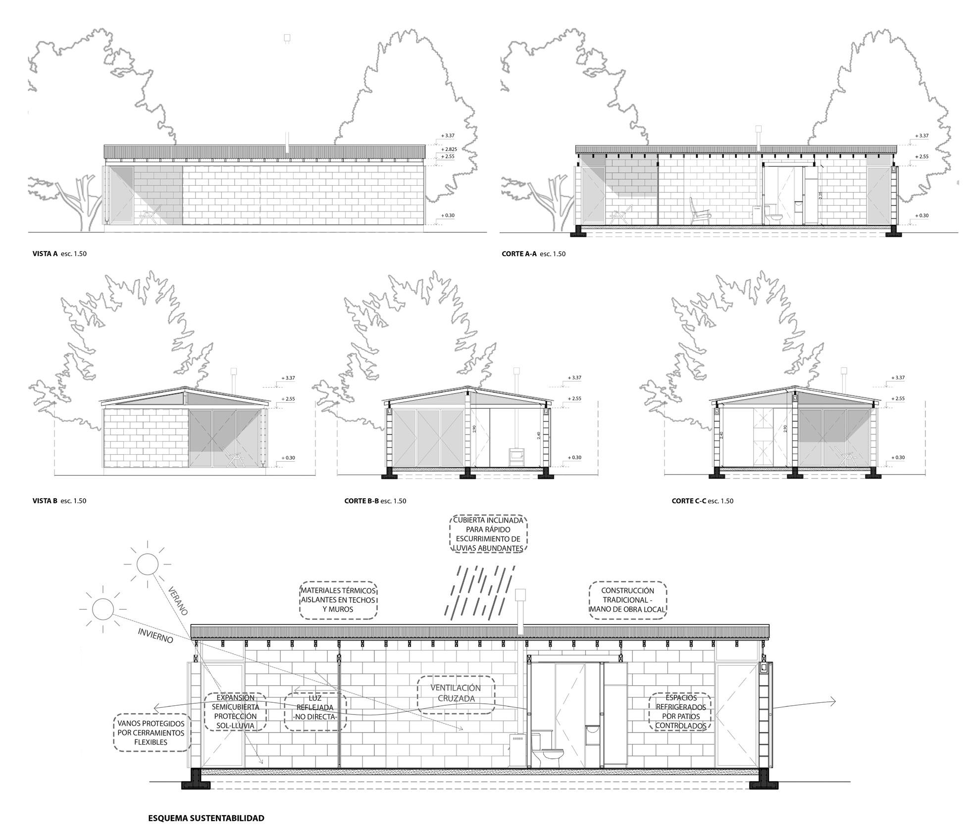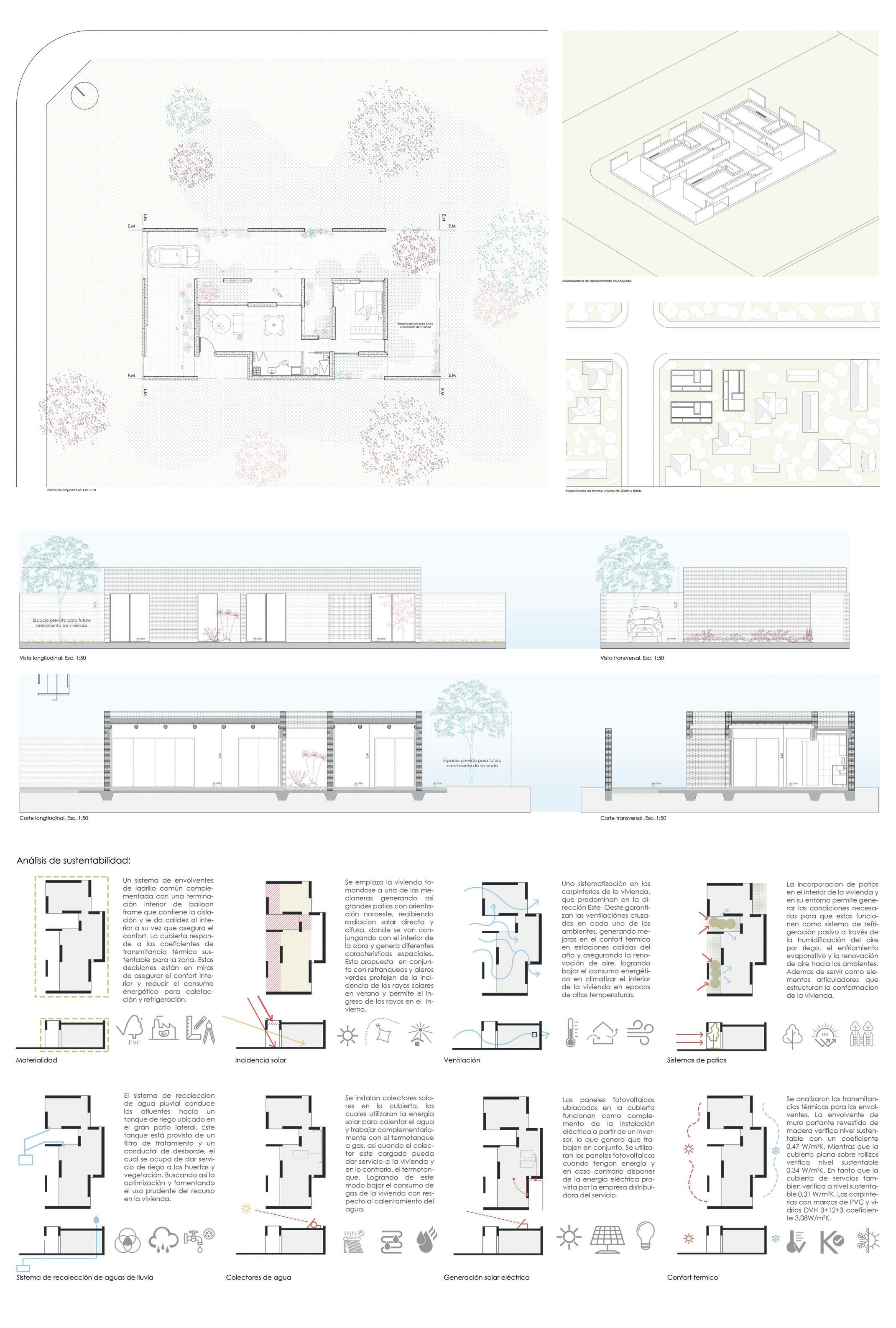 Considerando el ambiente y la sustentabilidad, se busca cumplir desde el diseño y la materialidad con las principales condiciones que la vivienda debe cumplir: