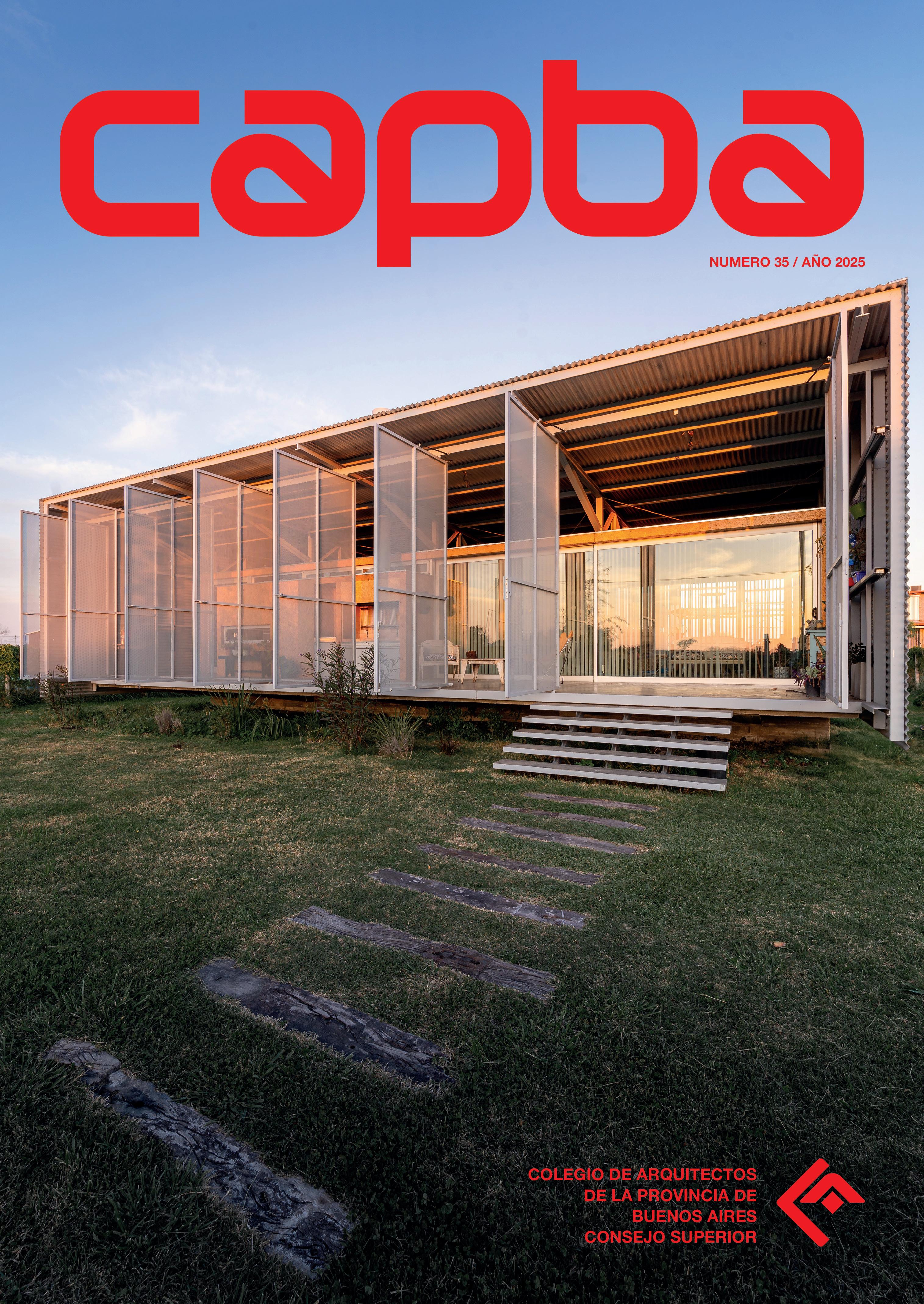 Revista CAPBA es el medio gráfico de comunicación del Colegio de Arquitectos de la Provincia de Buenos Aires Los artículos publicados expresan los puntos de vista de sus autores y no necesariamente representan los de la institución propietaria. Los artículos sin firma son conocidos por el Consejo Editor y su responsabilidad última recae en el Director Responsable. Revista CAPBA autoriza la reproducción total o parcial de los artículos contenidos en la misma con el compromiso de citar la fuente. Registro de propiedad intelectual en trámite.