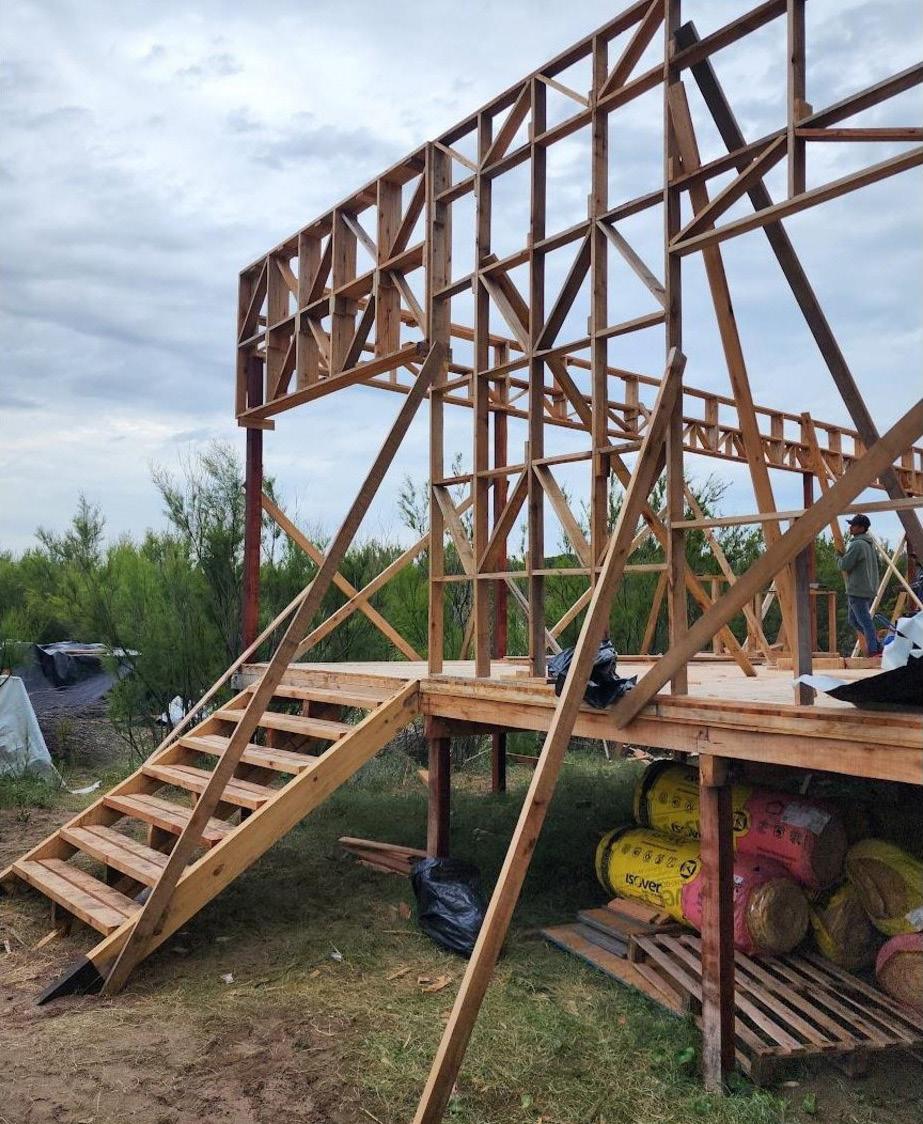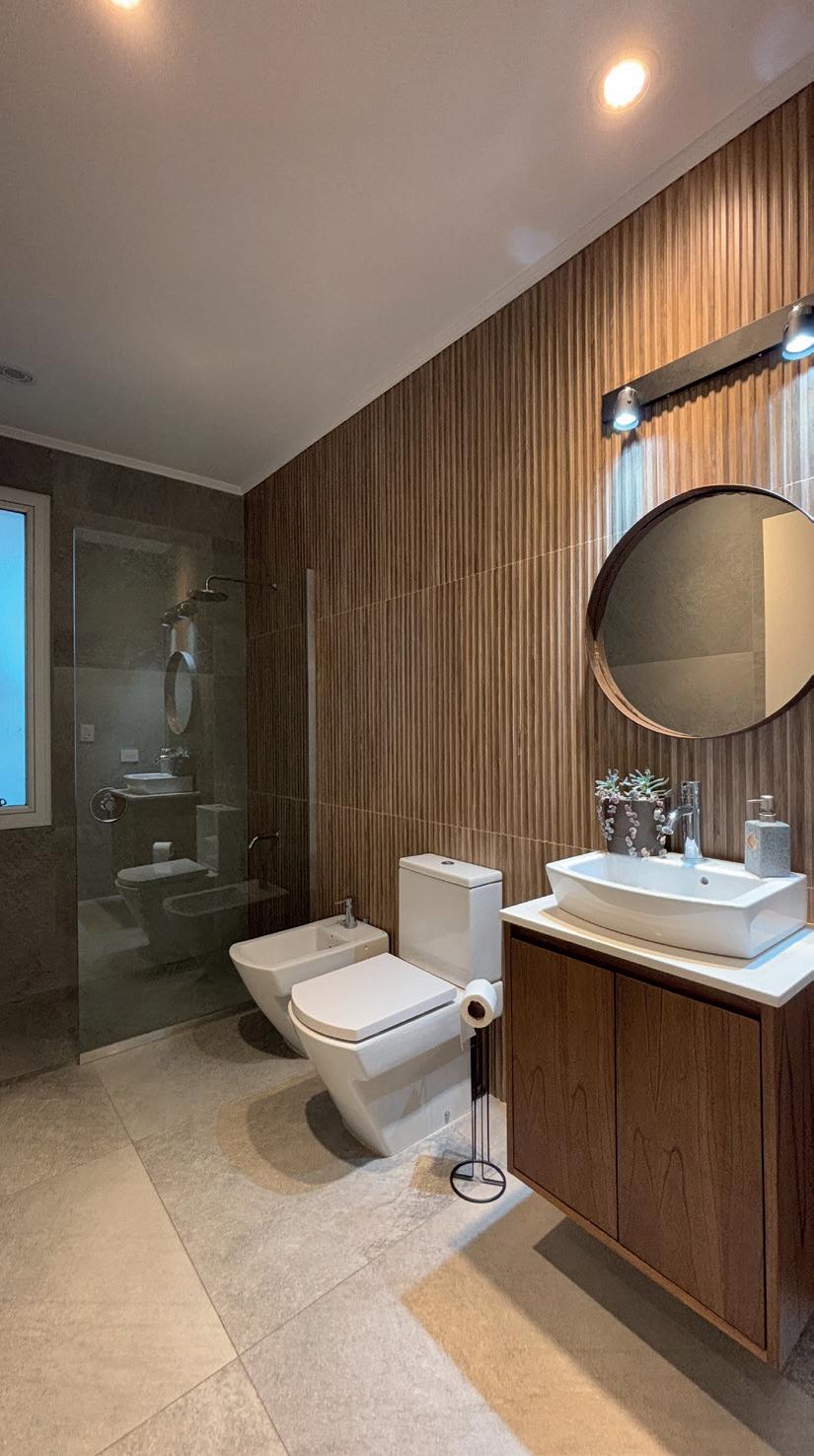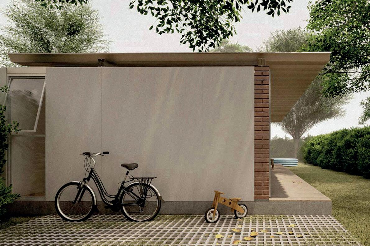 El piso se monta sobre las vigas de fundación, dejando un colchón de aire que evita el contacto con la humedad de la tierra. El cerramiento vertical liviano de capas resuelve la aislación térmica. Estos elementos, sumados al techo ventilado, contemplan que el proyecto responda a condiciones de eficiencia energética según particularidades de las distintas zonas y requerimientos del usuario.