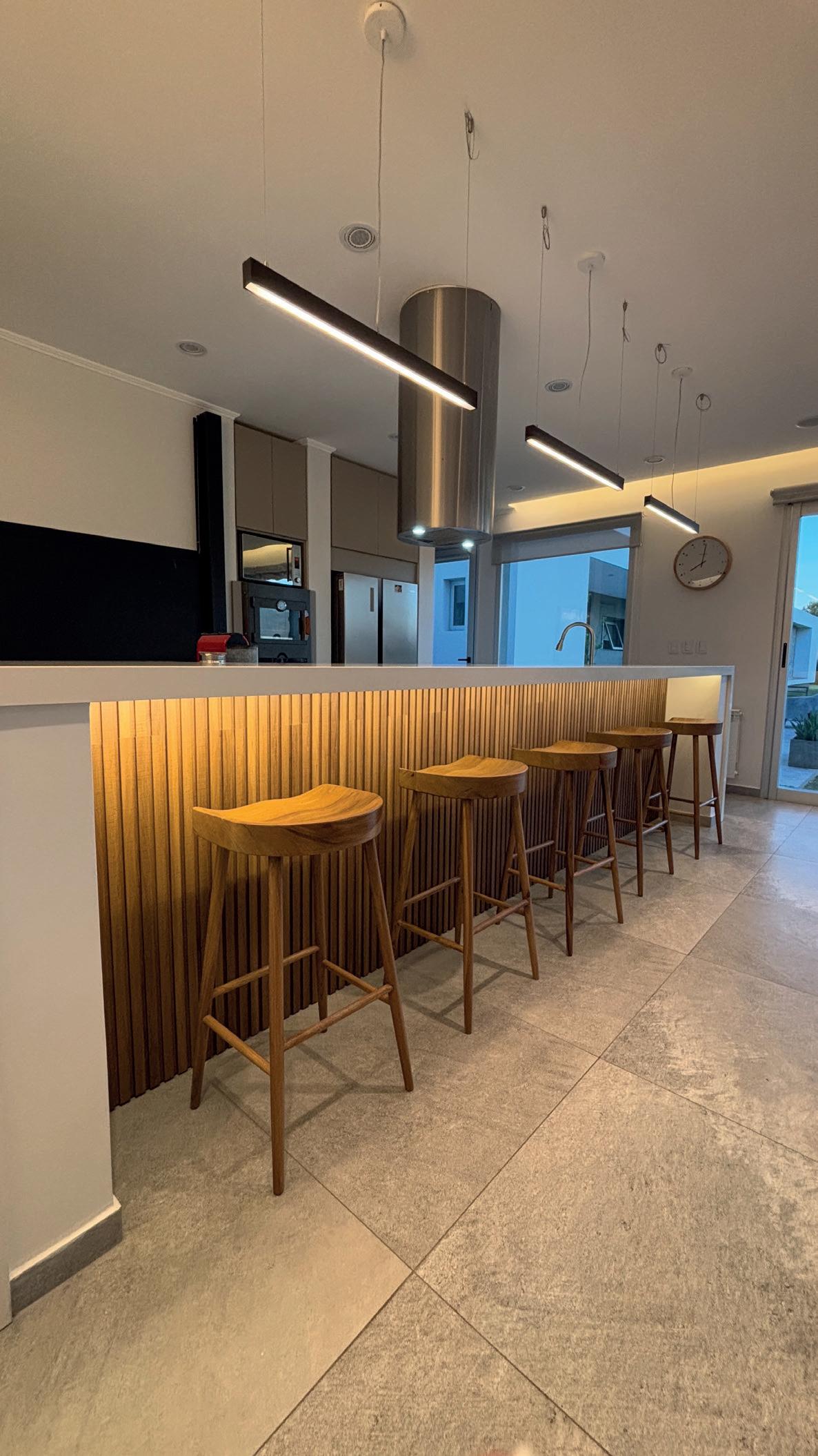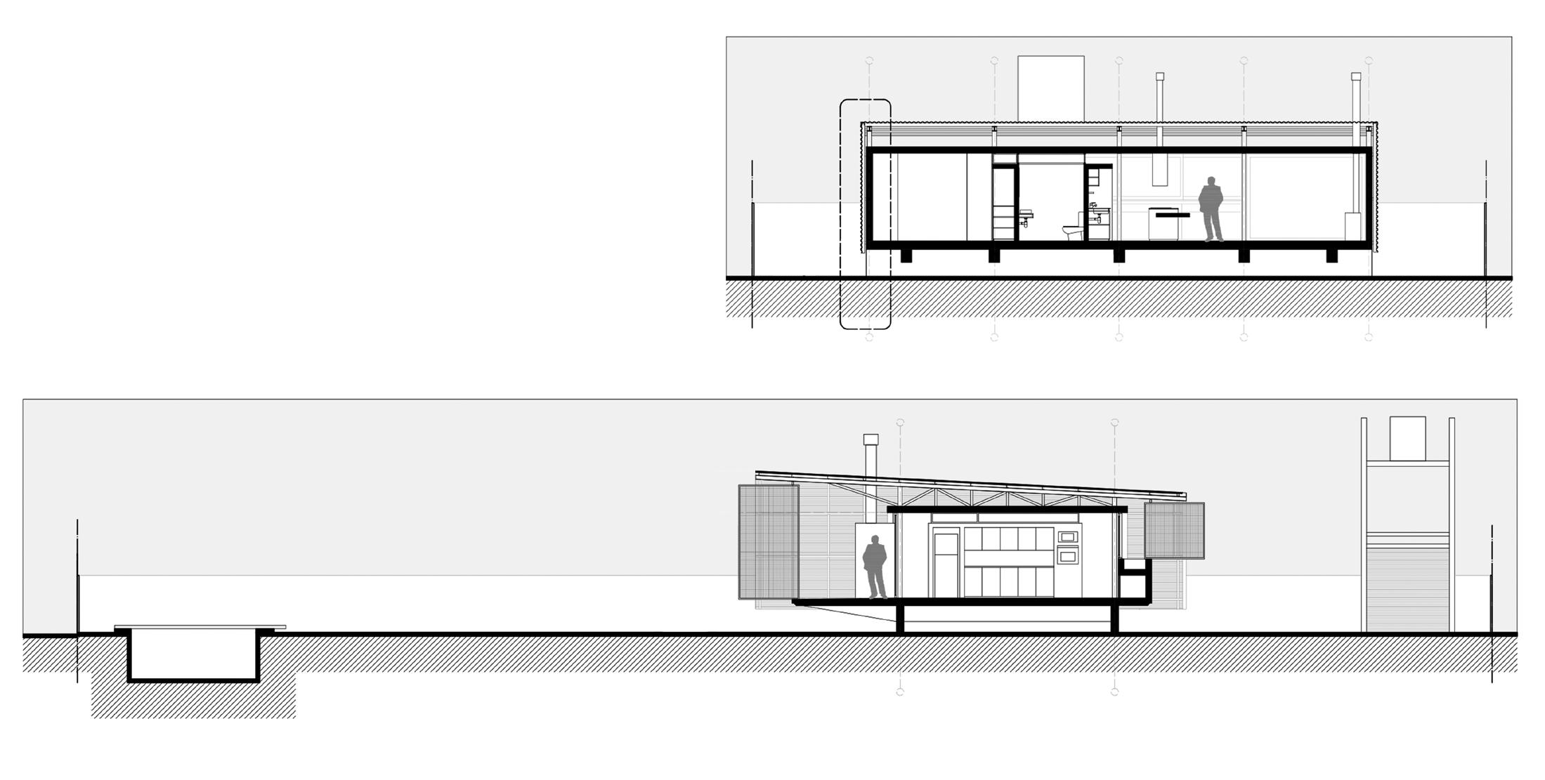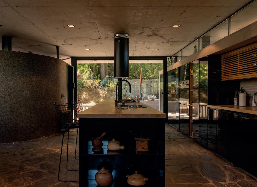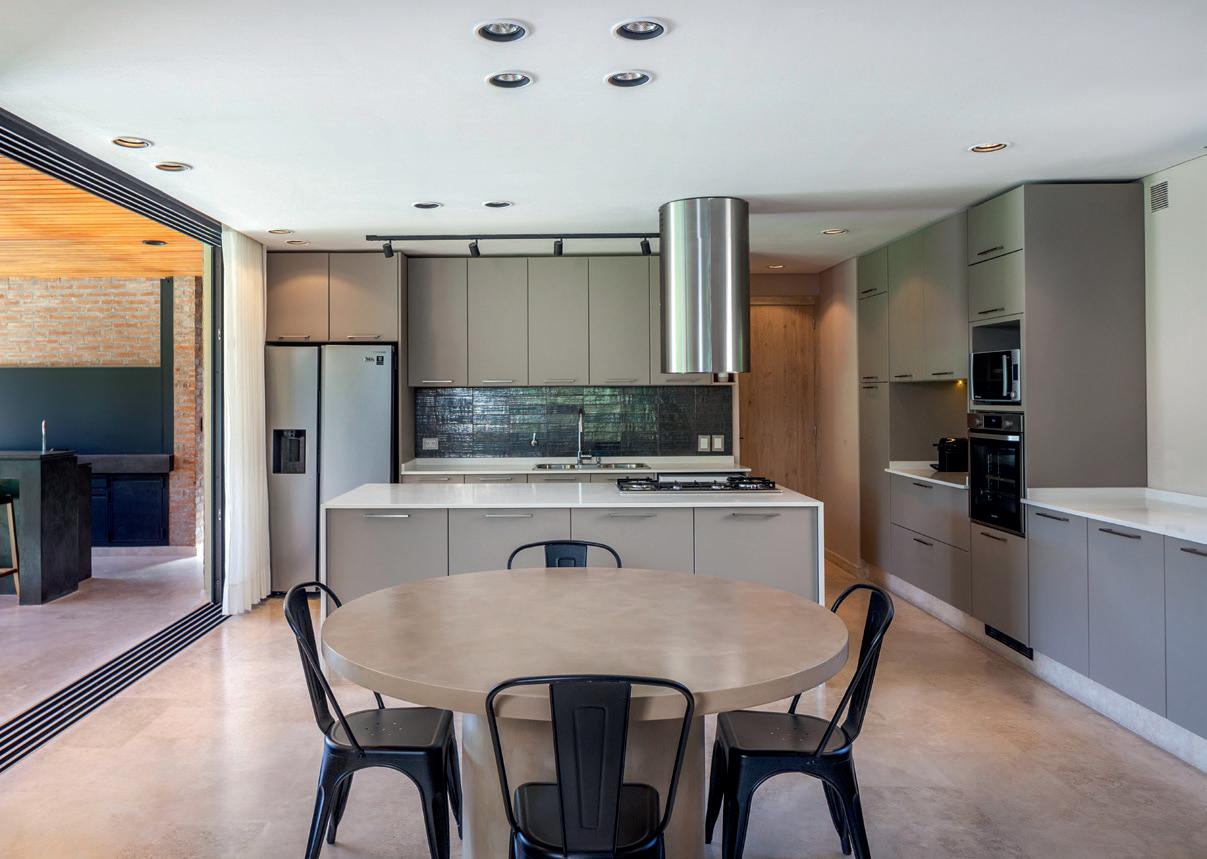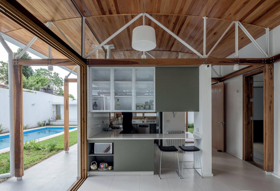 Un espacio lateral alberga los servicios cocina y baño, concentrando la totalidad de las instalaciones para racionalizar el recorrido de desagües y provisión de agua.