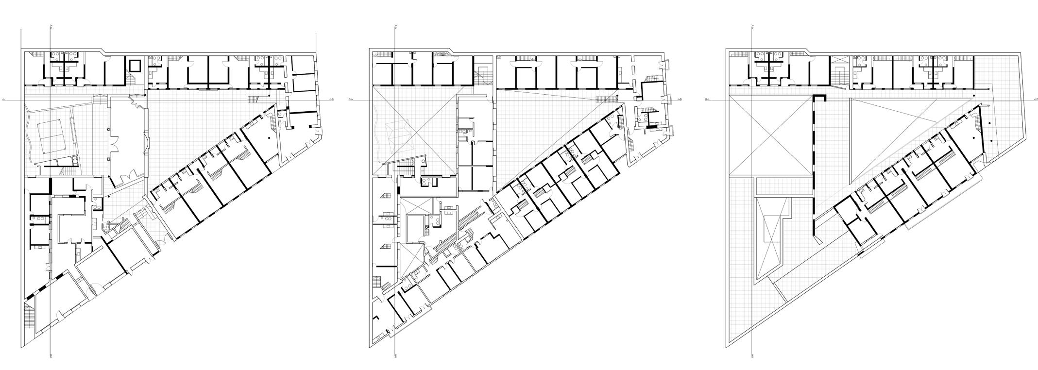 • Los servicios se concentran en un módulo lateral medio, que se define a izquierda o derecha de acuerdo a la posición del lote en la manzana.