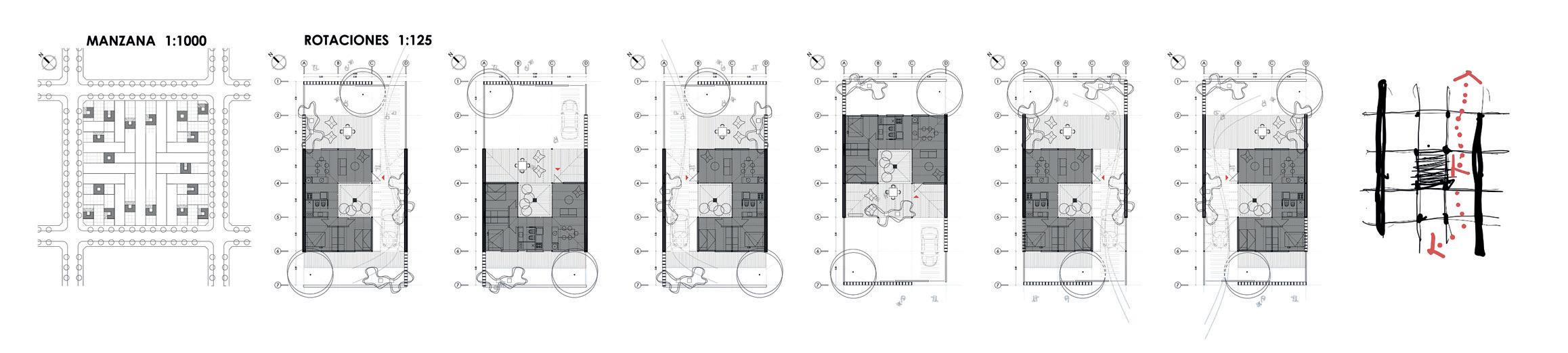 El tejido propuesto se estructura a partir de una unidad flexible y sustentable, adaptable a los cambios y mutaciones de la vida de los usuarios. Sobre esta premisa surge la idea de sintetizar el cuerpo cerrado y su contraforma en el cuerpo abierto. Un damero en grilla de 3.30 x 3.30 que resuelva las necesidades básicas del habitante con su célula inicial, que además de los usos convencionales, propone espacios de transición y expansión entre interior y exterior. La propuesta considera al patio de la unidad tipológica como una unidad familiar sustentable con manejo de estrategias pasivas de recursos energéticos, recuperación de aguas grises, huerta familiar, gestión de energías geotérmicas y utilización de paneles solares, de manera de constituir no sólo un caso concreto de racionalización de recursos y ahorro energético, sino también una estrategia de concientización y capacitación ciudadana
