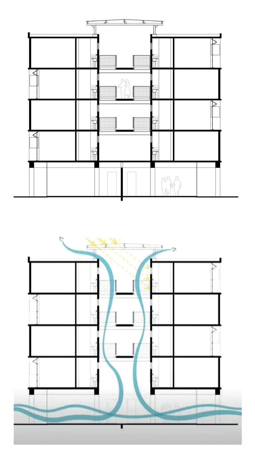 • Ventilación cruzada, desde la disposición de los aventanamientos.