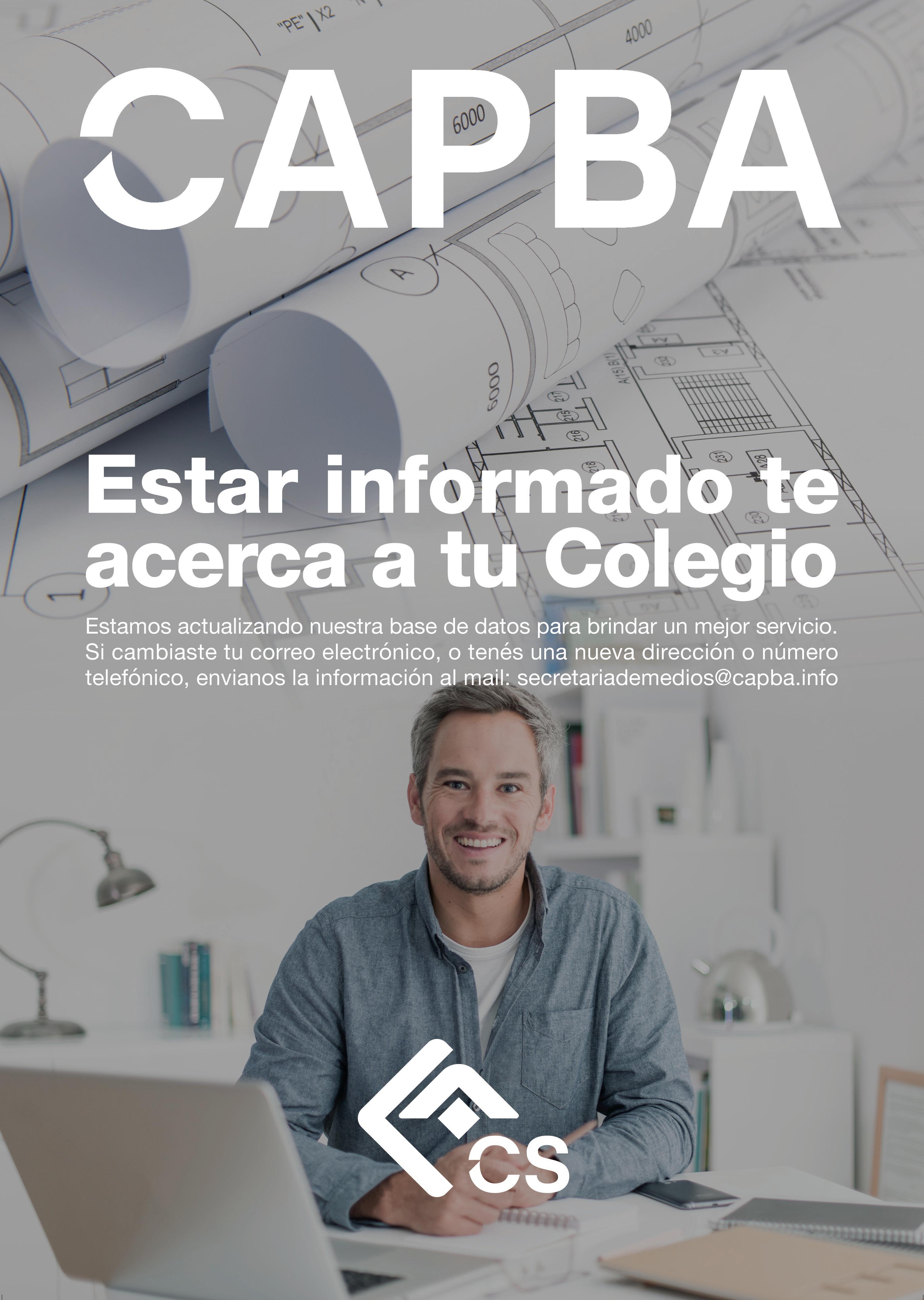 Propietario Colegio de Arquitectos de la Provincia de Buenos Aires / CAPBA / Calle 54 Nº 315 / La Plata / Provincia de Buenos Aires / Argentina T. (0221) 482-2631 / 421-8032 / info@capba.org.ar / www.capbacs.com