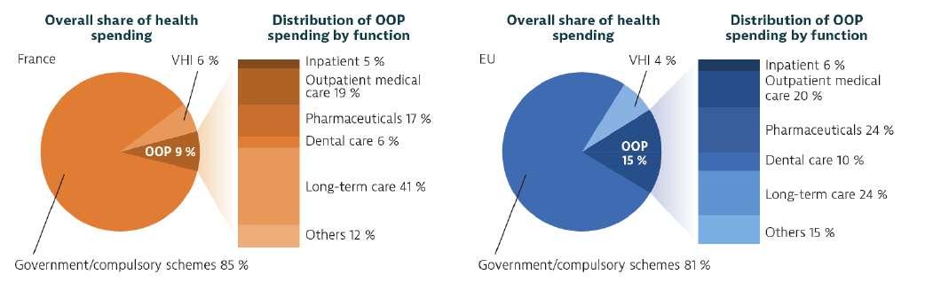 The SHI scheme in which workers enroll is mandatory and based upon the type of employment. Individuals cannot choose their scheme or insurer, nor can they opt out, thus there are no competing health insurance markets for SHI. Parliament determines annual contributions. Unemployed are covered for one year after job termination by the SHI scheme of their employer and then by the universal health coverage law (PUMa). Pensioners, students, and people with a taxable income of less than €8,200 per year (unless they have capital and assets over a certain value) are exempt from paying contributions (Code of Social Security on 22 December 2018). Undocumented migrants and foreigners who do not regularly reside in France are covered by a separate, fully state-funded medical aid scheme (Aide médicale de l’Etat, AME), which provides access to a more limited benefits basket. In addition, the State contributes to funding prevention (a third of the government expenditure on health) through the national public health agency, which can organize national and local health promotion and prevention activities. Funding for medical research and training of medical professionals represents almost half of the State budget.