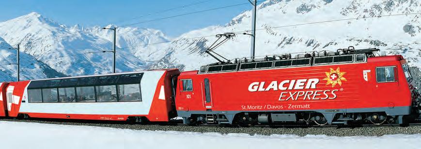 January 3rd: INTERLAKENSwiss Alps & Lakes Today we take one of the Great Rail Journeys of the World – the tiny red Glacier Express through the Alps as we enjoy breathtaking views from the panorama car. [B]
