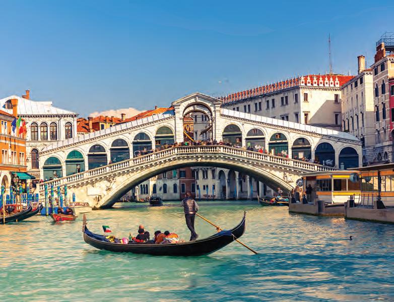 January 4th: To VENICE Another of Europe’s great rail journeys today. The Swiss-Italian Cisalpino takes us through the Alps past the Northern Italian lakes via Milan and on to the City of Canals, Venice, another of Europe’s truly romantic cities. Our 4 star hotel overlooks the Grand Canal. Settle in and watch the lights come on as the waterbuses chug past. [B,D]