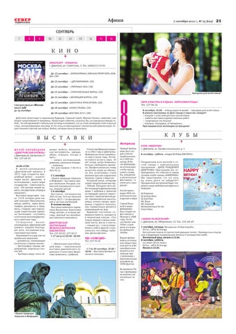 «ЗАМОК РАЗВЛЕЧЕНИЙ» г. Дмитров, ул. Оборонная, 12. Тел. 225-49-49 7 сентября, пятница. Вечеринка «Friday tequila». DJ Fun _off & DJ Orange Бесплатная текила от прелестной девушки топлес. Проведи ночь под яркую и бодрящую танцевальную музыку от резидентов клуба. Бесплатный вход, начало в 23.00. 8 сентября, суббота. Ice show «Arctic town» DJ Fun _off & DJ Orange Начало в 23.00.