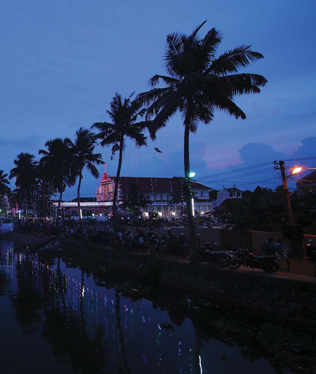 thousands throng to worship and participate in the varied activities there. Thiruvanantapuram, the capital of the State may be called the city of temples with hundreds of sacred temples both big and small. There may not be any town or village without a temple, a church and a mosque, as well as other places of worship. There are a few ancient Jewish synagogues here the most important one being in Fort Kochi. Various festivals are celebrated all the year round with special religious rituals characteristic of each festival. Elephants decorated with gold and silver ornaments are a special part of almost all these festivals. Combined with the characteristic temple orchestra like Panchavaadyam the array of these caparisoned elephants is a treat to watch. With so many places of