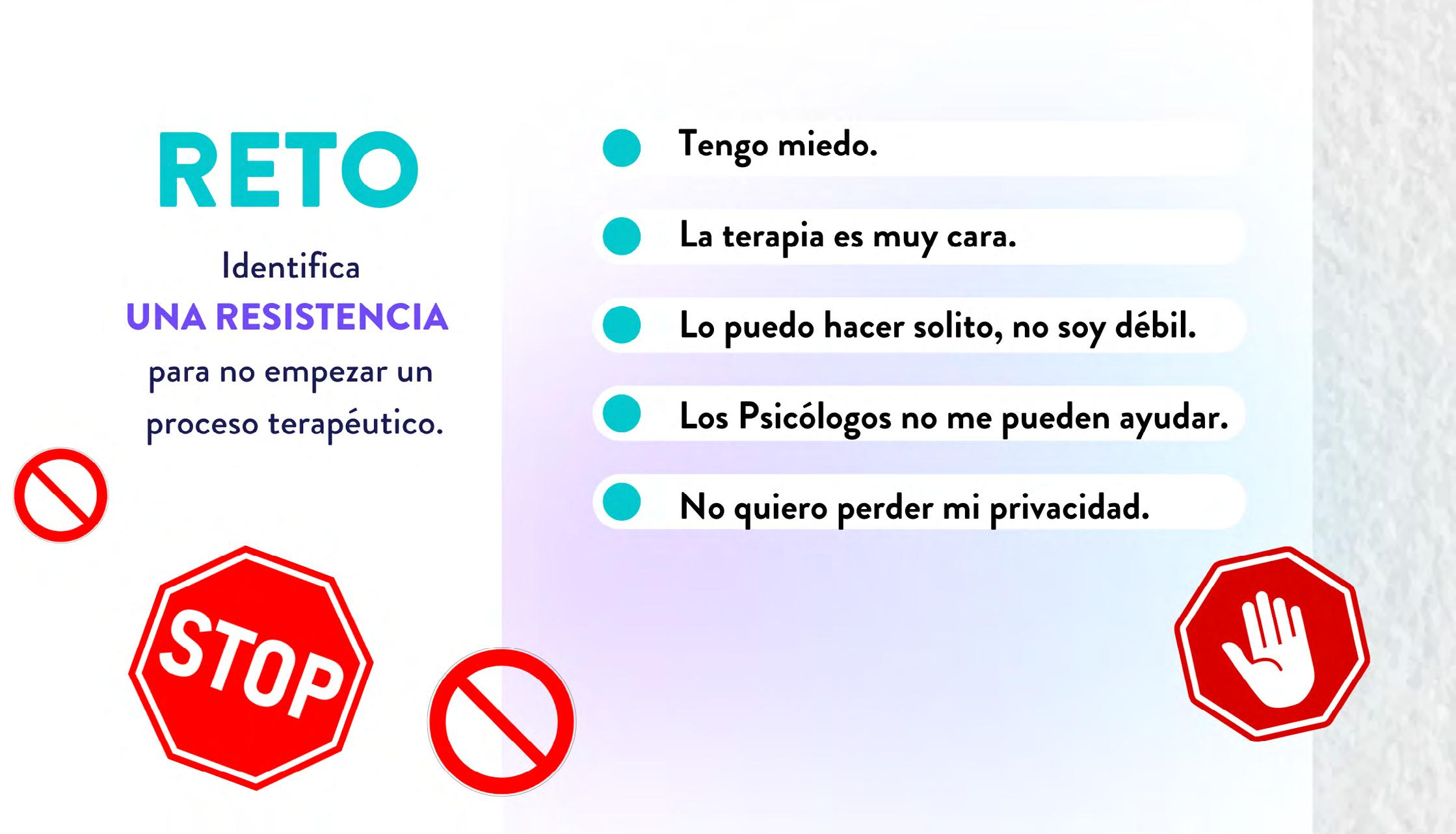 Como siempre terminamos con un reto para llevar a casa. En esta ocasión, queremos que logres identificar una resistencia para empezar un proceso terapéutico aunque tal vez lo estés necesitando o alguno de tus hijos, acuérdate que buscar ayuda cuando lo necesitamos, ¡demuestra valentía, no debilidad!