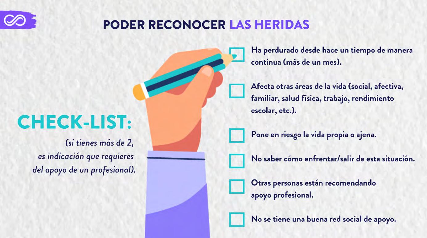 Si tienes más de 2 chequecitos en el listado, es una indicación de que necesites de un apoyo profesional. Algunas razones por las que las personas necesitan ir a terapias son: duelo, pérdida de trabajo, cambios drásticos en la vida, diagnóstico médico o psicológico (de uno mismo o de una persona cercana), divorcio, etc.