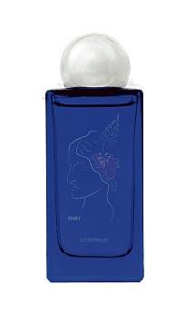 new fashion brand genDerfluiD has launched a line of three fragrances: iel, lovely queer and enby the blue lacquered bottles are screenprinted with a flower evoking the fragrance composition and are topped with white spherical caps. each is nestled in made-in-France fabric pouches.