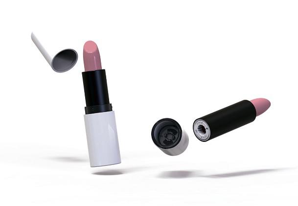 Pour le rouge à lèvres rechargeable, la base et le capot en PBt combinent différents imprimés (un design malachite, par exemple, ou un gainage en simili cuir) la pastille supérieure en zamak est galvanisée aspect vieil or poli et gravée du logo de la marque.