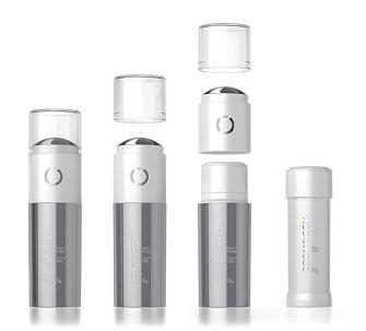 rechargeables Huit flacons sont laqués et deux sont décorés avec le procédé quali Glass Coat (revêtement en poudre à faible impact environnemental) du verrier Stoelzle Chaque flacon est inséré dans une coque en bois, porcelaine, plastique ou aluminium. le capot et le col sont en zamak galvanisé, et l’étui est en fibre moulée thermoformée