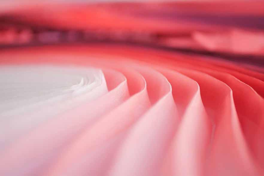 Producing Formes de Luxe’s cover this issue was a challenge «as artistic as it was technical», says its creator, Claire Deffarge, H ead of Studio Créa Design. “ During my visit to Oudin, I was captivated by the material waiting to be recycled. The idea of transforming this raw material into a work of art called to me! ” This inspiration was the starting point for Oudin to create a bespoke material for the project: two-sided 480g White Silk made from regenerated fibers, laminated in line on both sides with un coated paper. “Our goal was to create a board whose dimensional stability, surface finish and absorption capacity would allow for a number of different demanding conversion stages, while adapting its rigidity to the binding process”, explains Julien Fauvel, Product Manager at Oudin.