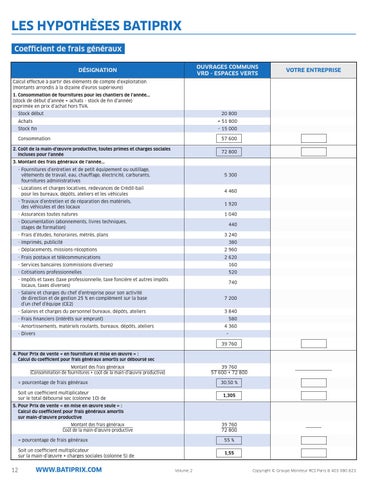 LES HYPOTHÈSES BATIPRIX Coefficient de frais généraux OUVRAGES COMMUNS VRD - ESPACES VERTS