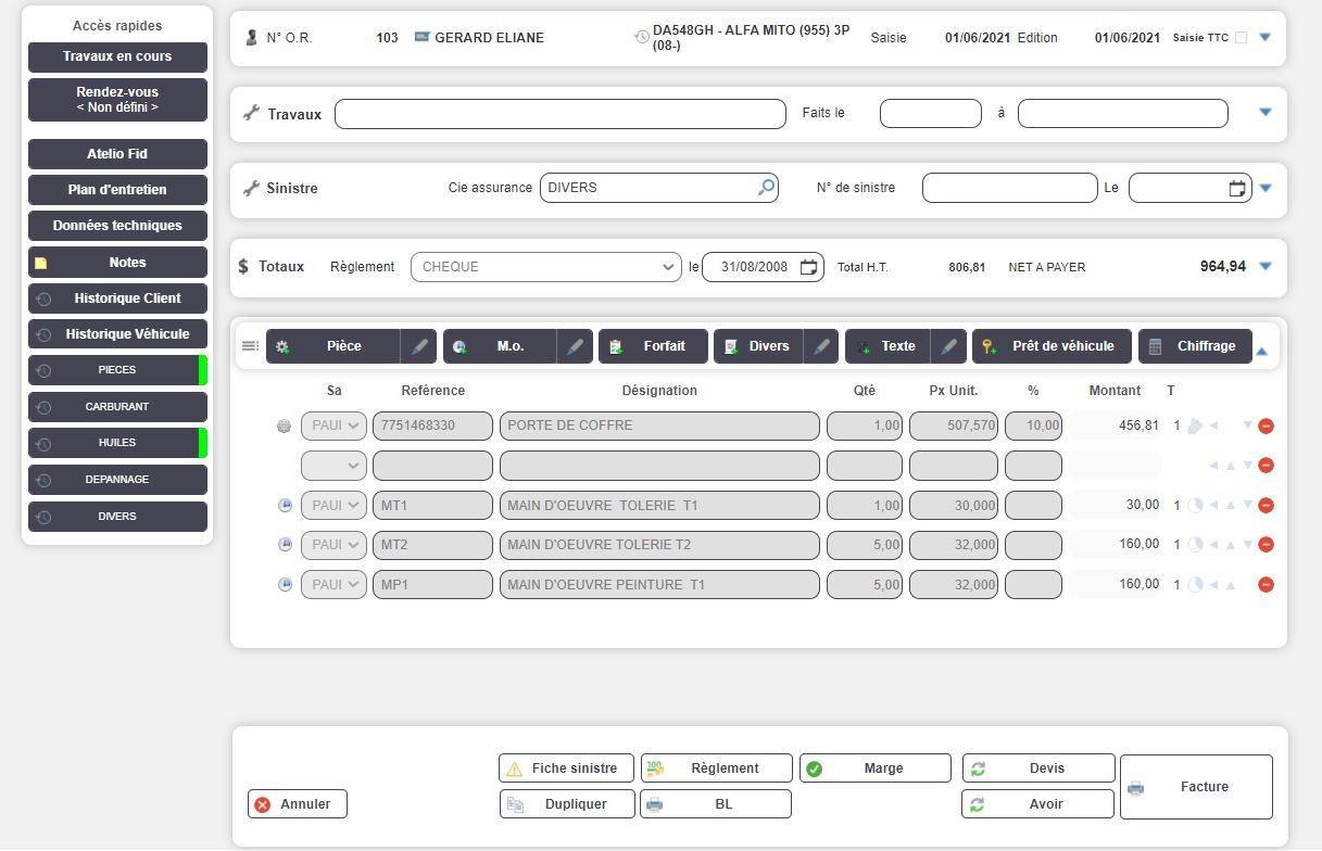 Module essentiel d’un DMS, la fonctionnalité « Facture » et « OR » de GTA