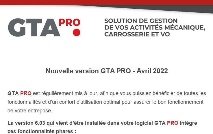 GTA PRO est régulièrement mis à jour, afin que vous puissiez bénéficier de toutes les fonctionnalités et d’un confort d'utilisation optimal pour assurer le bon fonctionnement de votre entreprise.