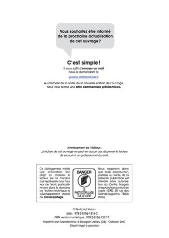 © Territorial, Voiron ISBN : 978-2-8186-1316-0 ISBN version numérique : 978-2-8186-1317-7 Imprimé par Reprotechnic, à Bourgoin Jallieu (38) - Octobre 2017 Dépôt légal à parution