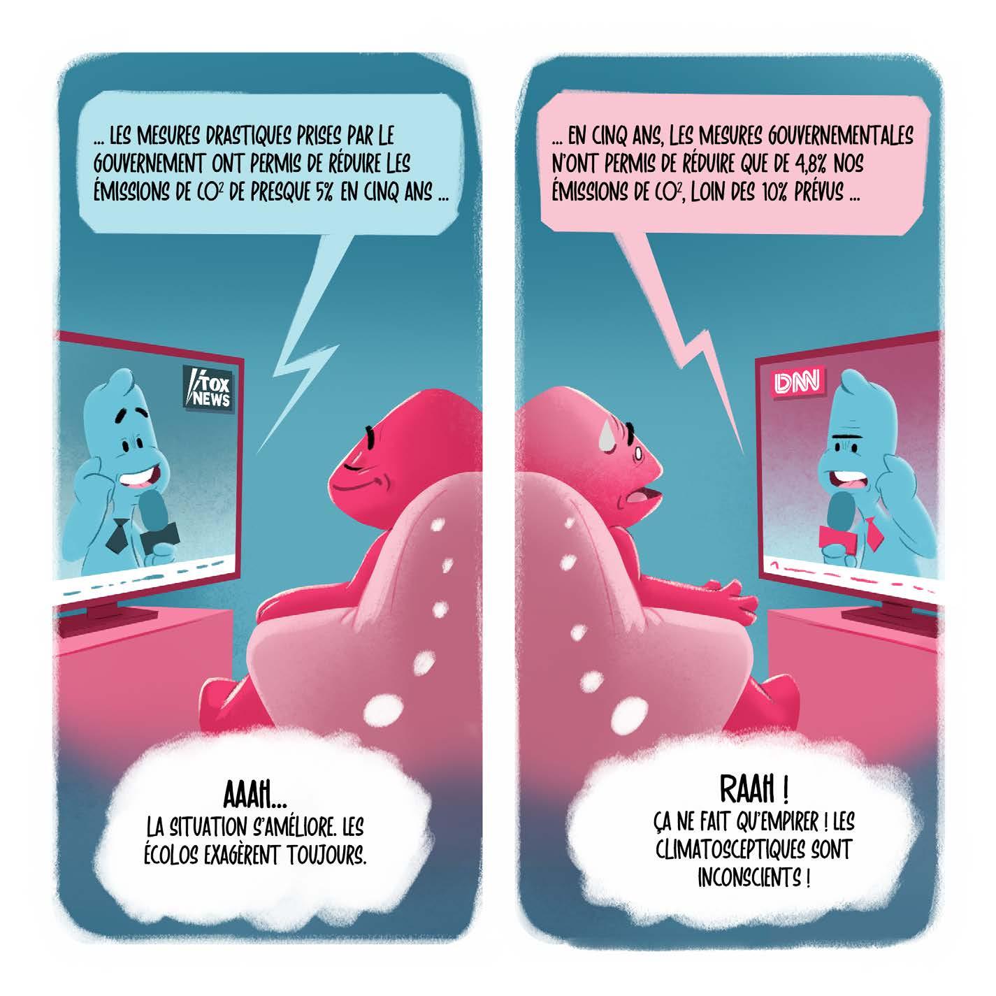Du coup, que doit-on faire ? Évidemment, l’objectif n’est pas de faire de toi un superhéros ou une superhéroïne avec une armure anti-biais, puisque c’est impossible d’interpréter la réalité qui nous entoure sans être influencé·e. Plusieurs biais sont d’ailleurs interconnectés, ce qui complique l’autocritique et le recul vis-à-vis de nos interprétations. Le biais de confirmation, par exemple, est indissociable du biais de croyance (tendance à ignorer des erreurs de logique quand la conclusion ne correspond pas à nos croyances), tout comme l’effet de troisième personne est indissociable du biais de conformisme (tendance à penser et agir comme les autres le font). Mais l’examen de nos biais cognitifs est indispensable, en particulier à l’ère du numérique et de la « post-vérité » (période où l’opinion personnelle, l’émotion et la croyance l’emportent sur la réalité des faits). Accepter nos biais, c’est accepter que personne n’ait le monopole de la vérité. Cela nous incite à la tolérance, et donc à une meilleure écoute de l’autre, sans exclure la confrontation des idées.