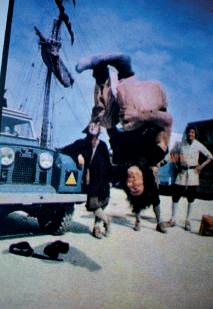 número acrobático que yo hacía, así que contacté con un importante operador de cine íntimo de los productores ingleses Robben, con quienes trabajé en la película “Cromwell” y a partir de allí, hice carrera en el cine con total dedicación, con más de 60 títulos en los que fui especialista en producciones (por citar solo algunas) como “El zorro” con Alain Delon; “Marchar o morir,” con Gene Hackman; “Los 3 mosqueteros,” con Richard Chamberlain y Raquel Welch… Trabajé durante 9 años haciendo cine, por ejemplo: tres producciones con Bud Spencer y con todas las grandes estrellas. Mi vida fue tremenda. Nos habló también de cómo eran las caídas desde grandes alturas en aquella época: “se armaban cajas vacías de un metro cuadrado y se apilaban en una gran superficie. Encima se ponían muchos cartones y sobre eso, otra superficie de cajas, así, dependiendo de la altura de la caída que había que hacer, hasta cuatro pilas de cajas. Y encima de eso, colchones y una lona”.